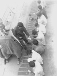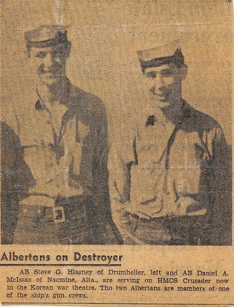 (SH40) HMCS CRUSADER'S kisby ring at the brow (SH41) R.O.K. gunboat coming alongside HMCS CRUSADER (SH42) 13 captured North Korean prisoners - Simmons with cigarettes (SH43) EM's Club, Yokahama, Japan, 01 Nov 1952 - (L-R) Norm Robins, George Jones, Steve Hlasny, Cliff Bulmer, Keith Amy (SH44) "Albertans on Destroyer" - Clipping from Drumheller newspaper - AB Steve G. Hlasny and AB Daniel A. McIssac