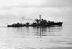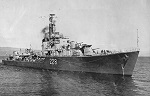 In Jan 1945, after a year's discussion, the British Admiralty agreed to lend the RCN a flotilla of "C" Class destroyers for use against the Japanese. The Pacific war ended, however, before any of the eight ships had been completed, and only two were transferred. The previous ships to bear their names, Crescent and CRUSADER, had been lost during the war as HMC Ships Fraser and Ottawa; this time they retained their names although the transfer was made permanent in 1951. Crescent and CRUSADER were virtually identical to Algonquin and Sioux, differing principally in having only one set of torpedo tubes and in being armed with 4.5-inch guns instead of 4.7-inch. Both ships were commissioned on the Clyde in 1945, Crescent on 10 Sep 1945 and CRUSADER on 26 Nov 1945. CRUSADER arrived at Esquimalt in Jan 1946, having made the journey via the Azores and the West Indies and was almost immediately paid off into reserve, a state in which she was to spend several years. After being brought out of reserve, CRUSADER carried out two tours of duty in the Korean theatre, the first between Jun 1952 and Jun 1953 (click here to read her operational report for this deployment), the second after the armistice, from Nov 1953 to Aug 1954. Reverting then to her former training role, she was paid off on 16 Jan 1960, at Halifax. She had earlier served as a test vehicle for a prototype VDS (variable depth sonar) outfit, a more permanent installation of which was made in Crescent in 1960. CRUSADER was sold for scrapping in 1963.
