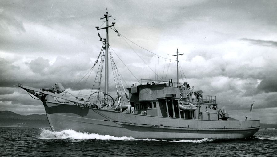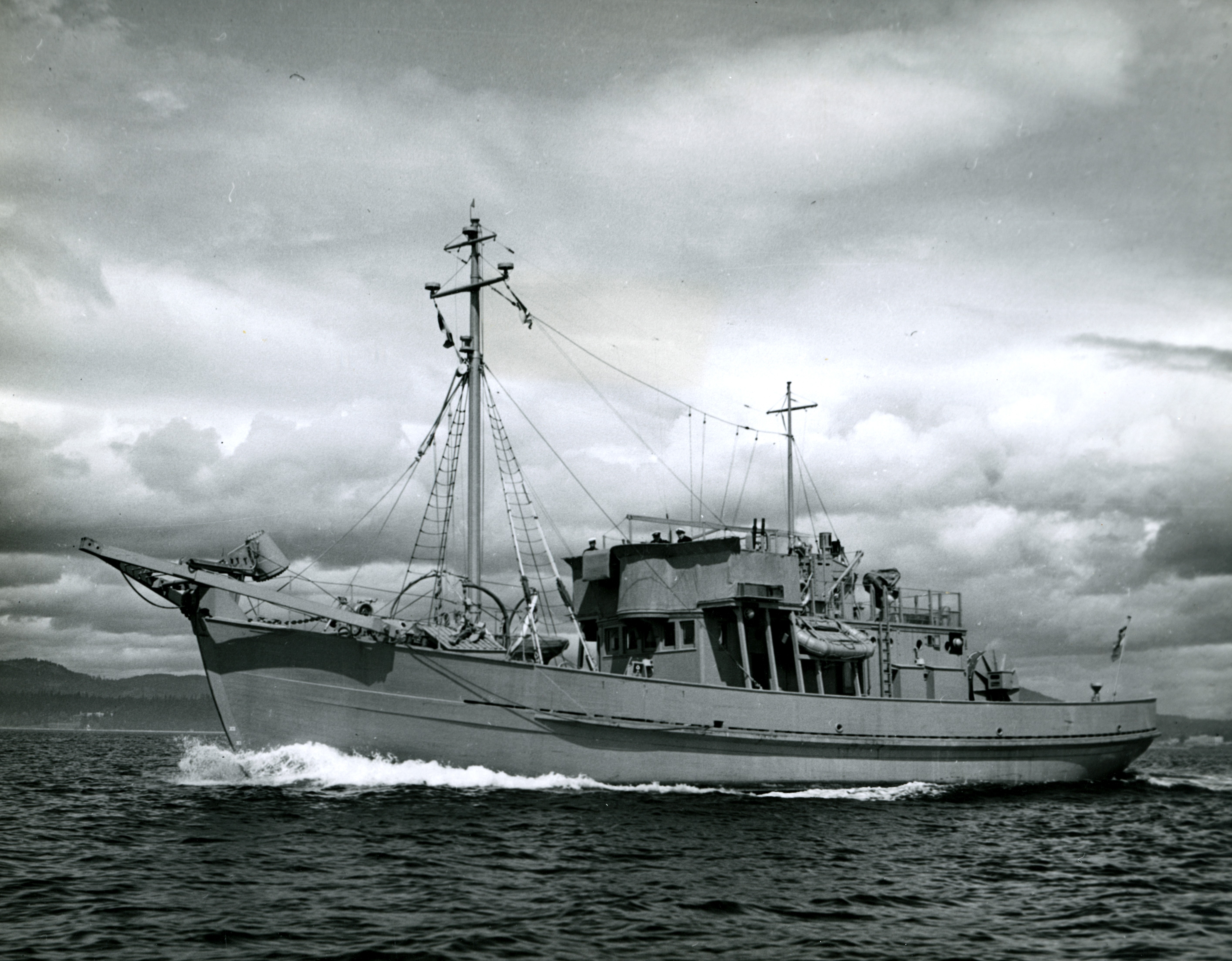 Built at Vancouver Shipyards Ltd., DAERWOOD was commissioned at Vancouver on 22 Apr 1944. She served out of Esquimalt on Esquimalt and Prince Rupert Force. She was sold in 1947.
