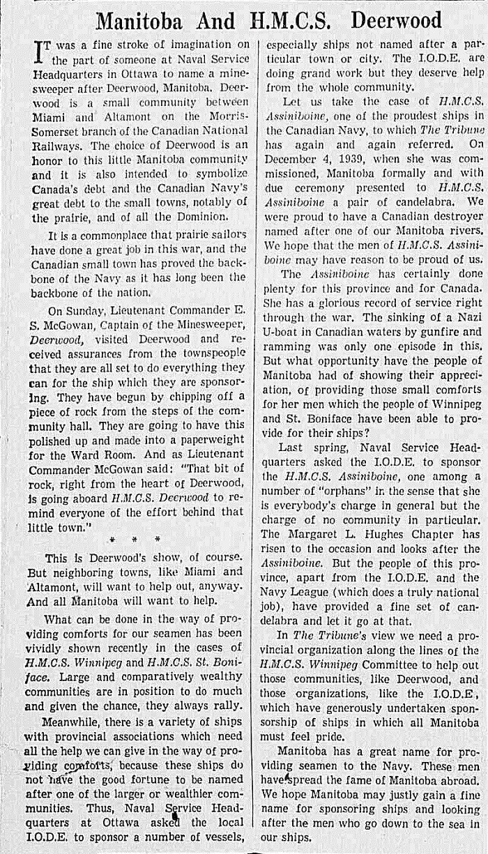 Manitoba and HMCS DEERWOOD The Winnipeg Evening Tribune 05 Oct 1943