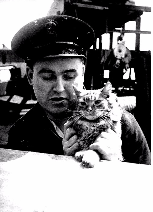 (JW01) Ginger the Survival Cat with Tubs on HMCS DAUPHIN (JW02) John Westell asleep on the upper deck of HMCS DAUPHIN (JW03) John Westell on a iced-up signal projector on HMCS DAUPHIN (JW04) "A motley crew" on HMCS DAUPHIN (JW05) L/Tel Bruce Todd and Tel Henry Graves on HMCS DAUPHIN