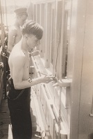 (JW06) "Mac" on HMCS DAUPHIN (JW07) Unidentified sailors painting on HMCS DAUPHIN (JW08) Chuck Hawkins on HMCS DAUPHIN (JW09) Unidentified sailors from HMCS DAUPHIN on the jetty in St. John's, Newfoundland (JW10) John Westell on HMCS DAUPHIN