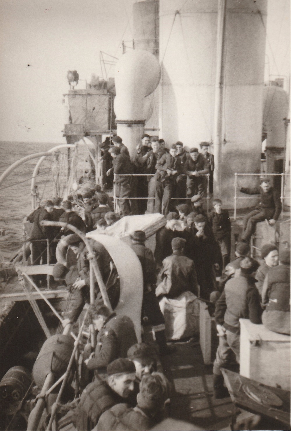 (JW16) Tubs Yarrow on HMCS DAUPHIN (JW17) Norwegian sailors rescued from sinking ship (JW18-JW19) Survivors from SS EMPIRE TRADER on HMCS DAUPHIN