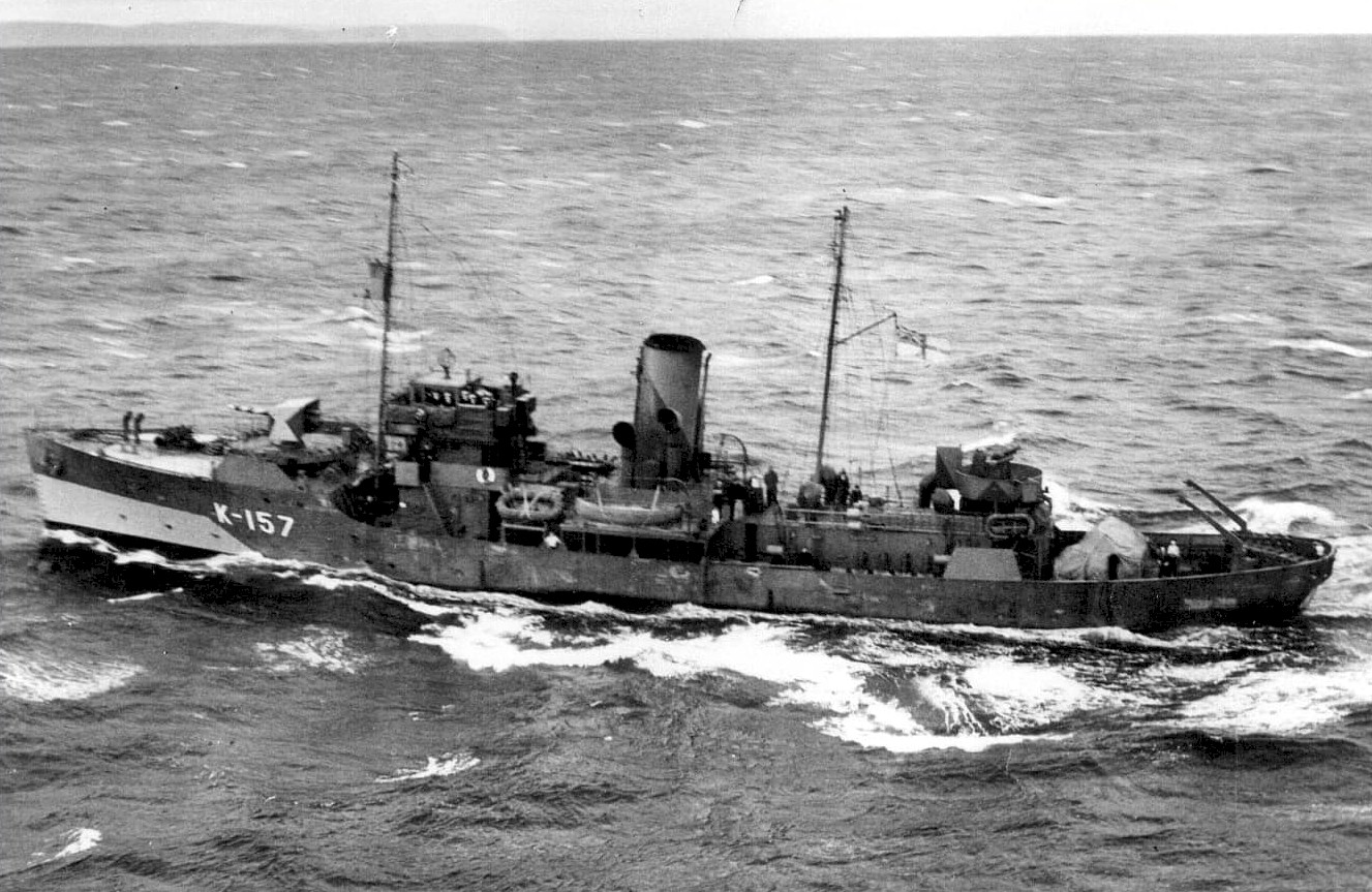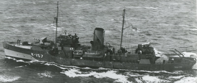 HMCS DAUPHIN K157 was built by Canadian Vickers, Montreal, and commissioned into the RCN June 20th 1941 and arrived at Halifax on 24 May 1941. DAUPHIN joined Sydney Force. In September of that year she transferred to Newfoundland Command. She left Sydney on 05 Sep 1941 to join her maiden convoy, SC.43, continuing on to the U.K. for further workups at Tobermory and returning to mid-ocean service in mid-Oct 1941 where she was part of the escort for 16 Newfoundland to Iceland convoys. She was then from transferred to Mid Ocean Escort Groups C2, C1 and C3 where she helped escort 9 convoys to and from Northern Ireland, Iceland and Newfoundland.