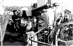 (JW11) Norwegian Captain rescued from sinking ship (JW12) Officer of the Watch on HMCS DAUPHIN (JW13) Quartermaster at the wheel on HMCS DAUPHIN (JW14) Reloading the depth charge rails on HMCS DAUPHIN (JW15) Gun deck and Bridge of HMCS DAUPHIN