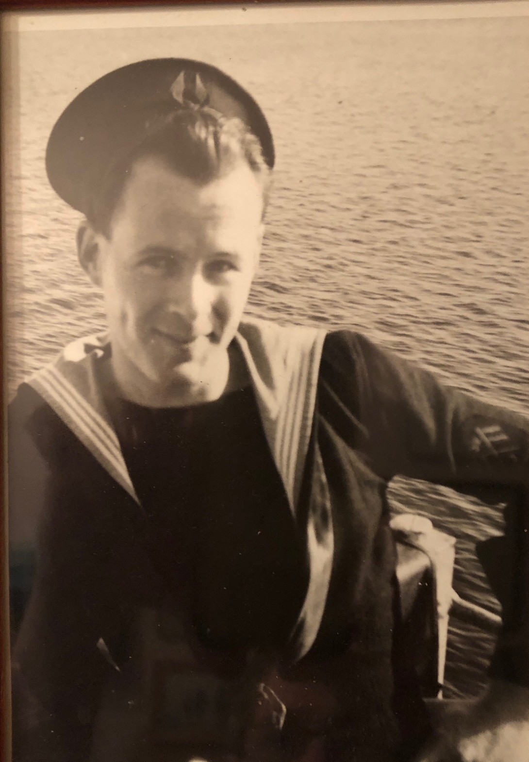 (WDW002) Leading Coder Wilfred Whitehouse onboard HMCS DRUMMONDVILLE (WDW003) Leading Coder Wilfred Whitehousea at the signal light on HMCS DRUMMONDVILLE From the collection of Wilfred Whitehouse, Leading Coder, RCNVR Courtesy of Ted Whitehouse