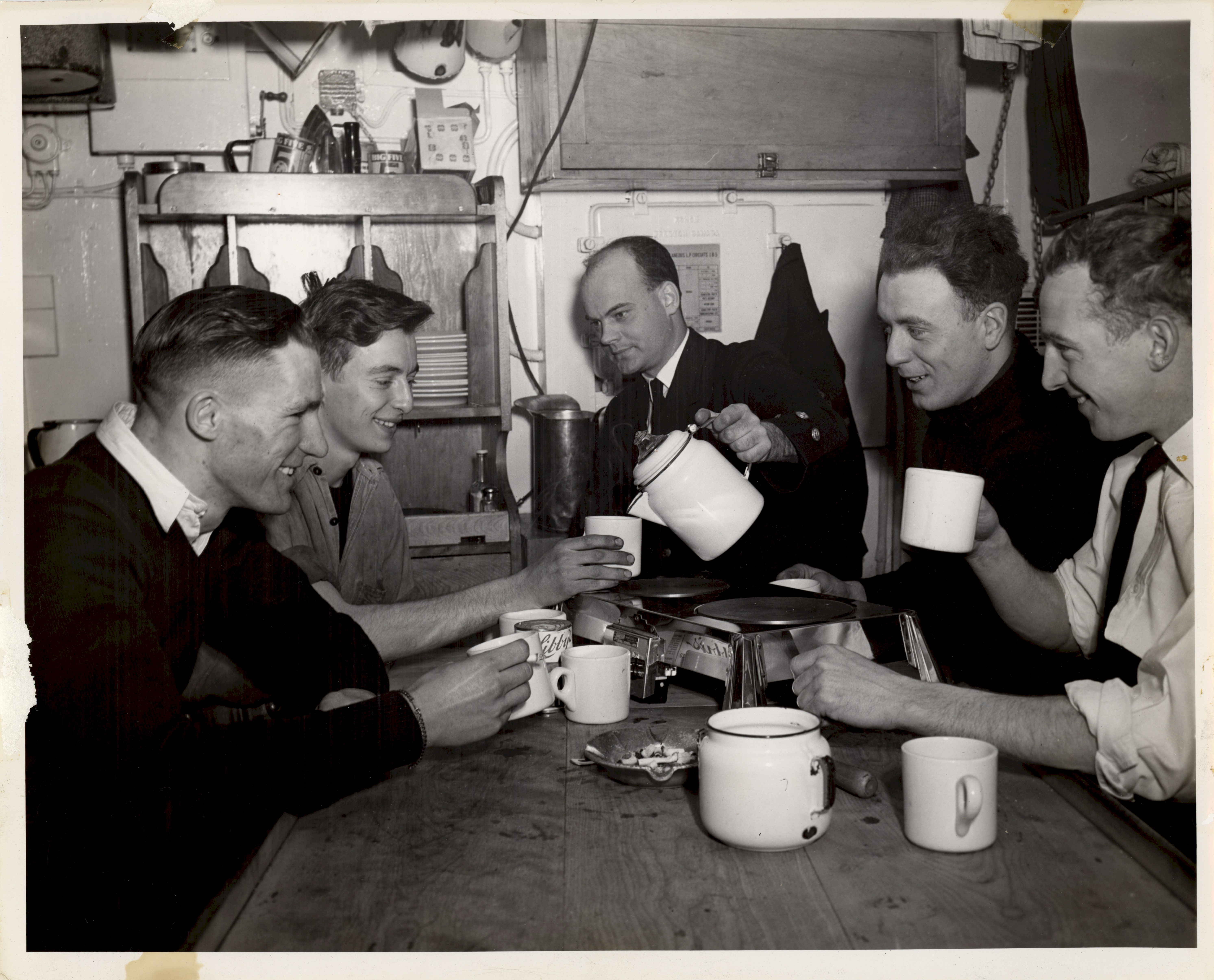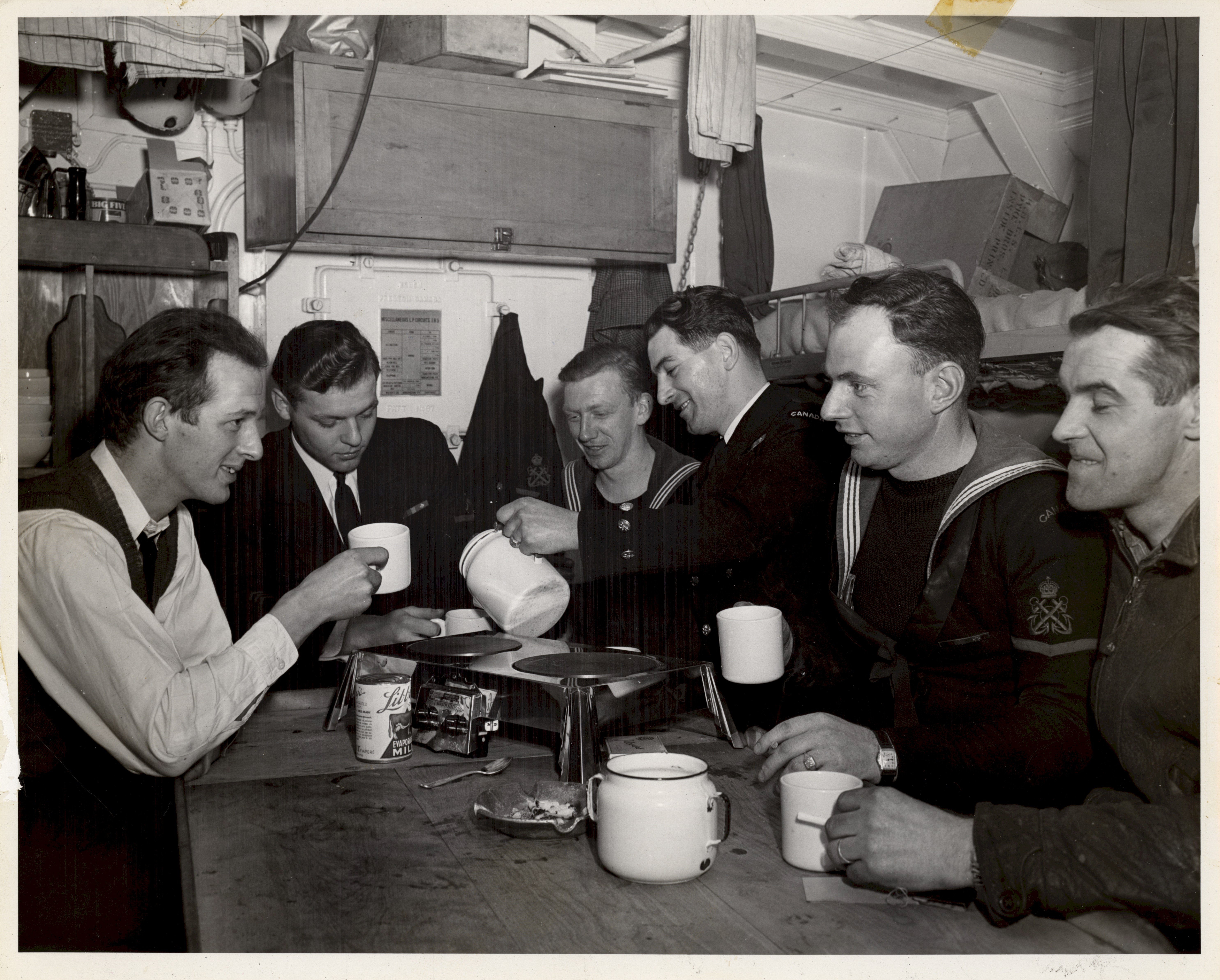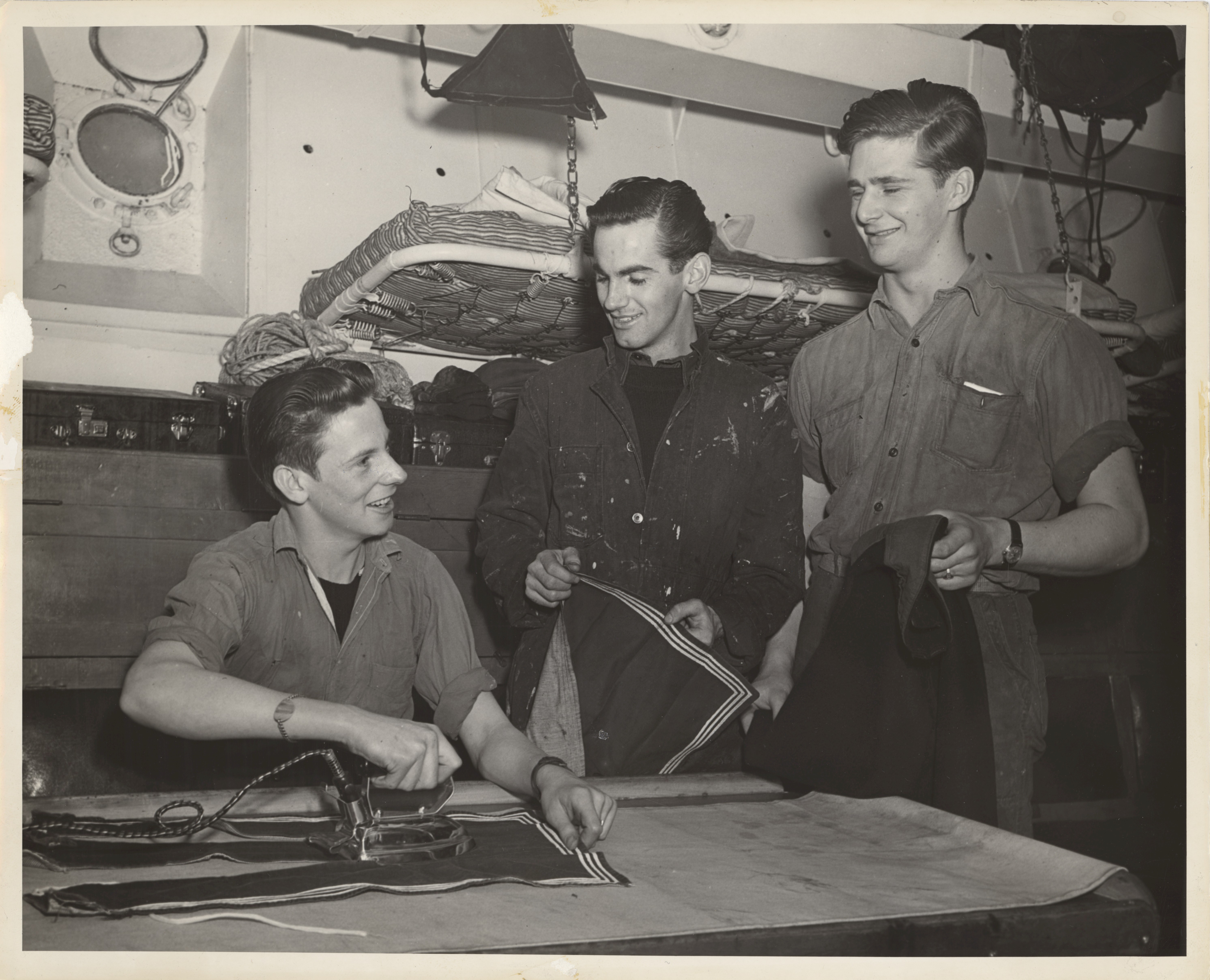 (DM05) Ratings ironing their collars (DMA06-DMA07) Coffee time in the Chief and Petty Officers mess