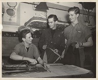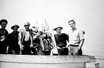 (WD42) Bill Dougall (right) and unknown shipmate with the "Catch of the Day" on board HMCS DUNDAS K229 (WD43) Bill Dougall (left) and unknown shipmate with the "Catch of the Day" on board HMCS DUNDAS K229 (WD44) Unknown sailors on board HMCS DUNDAS K229 posing with the "Catch of the Day"