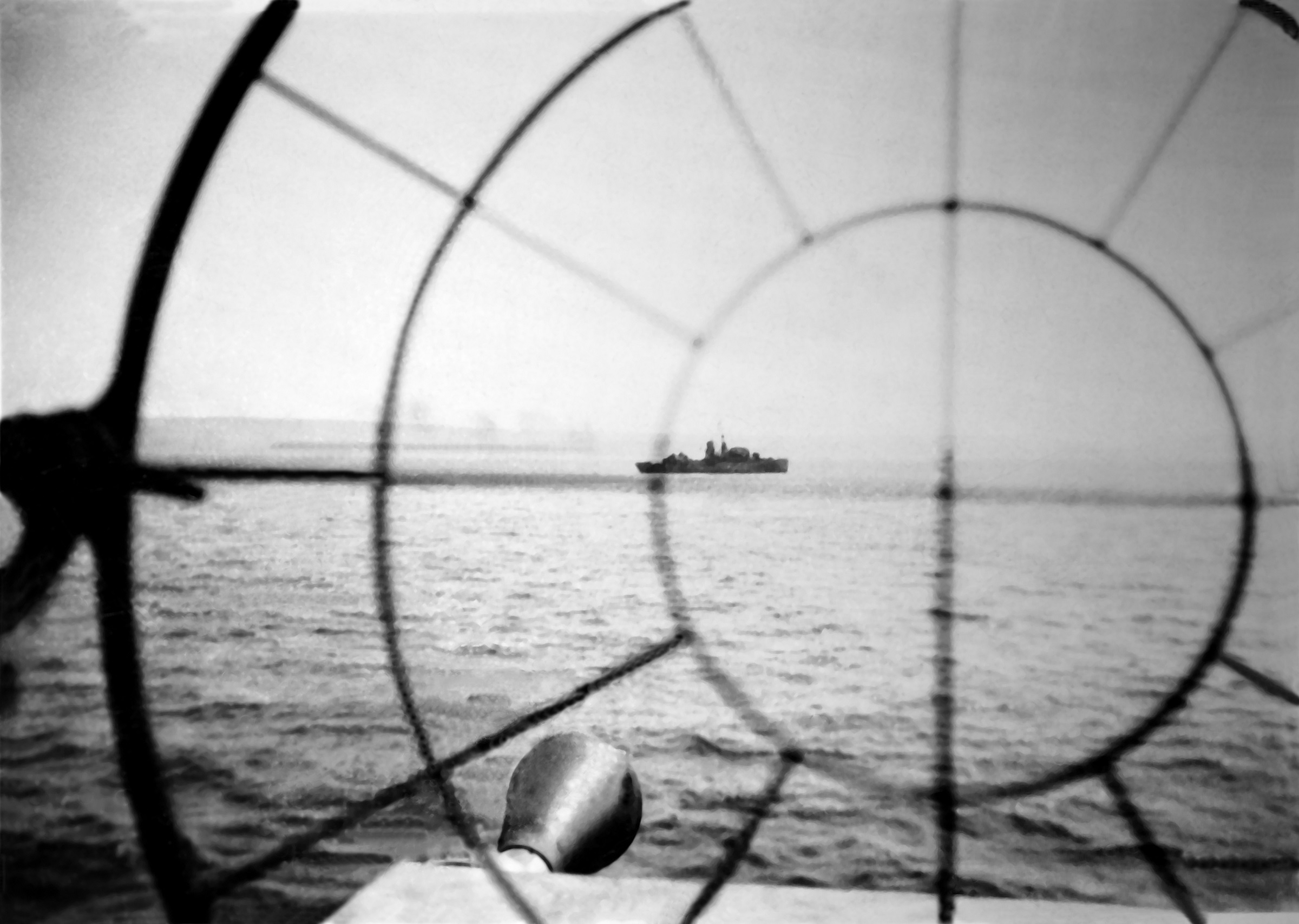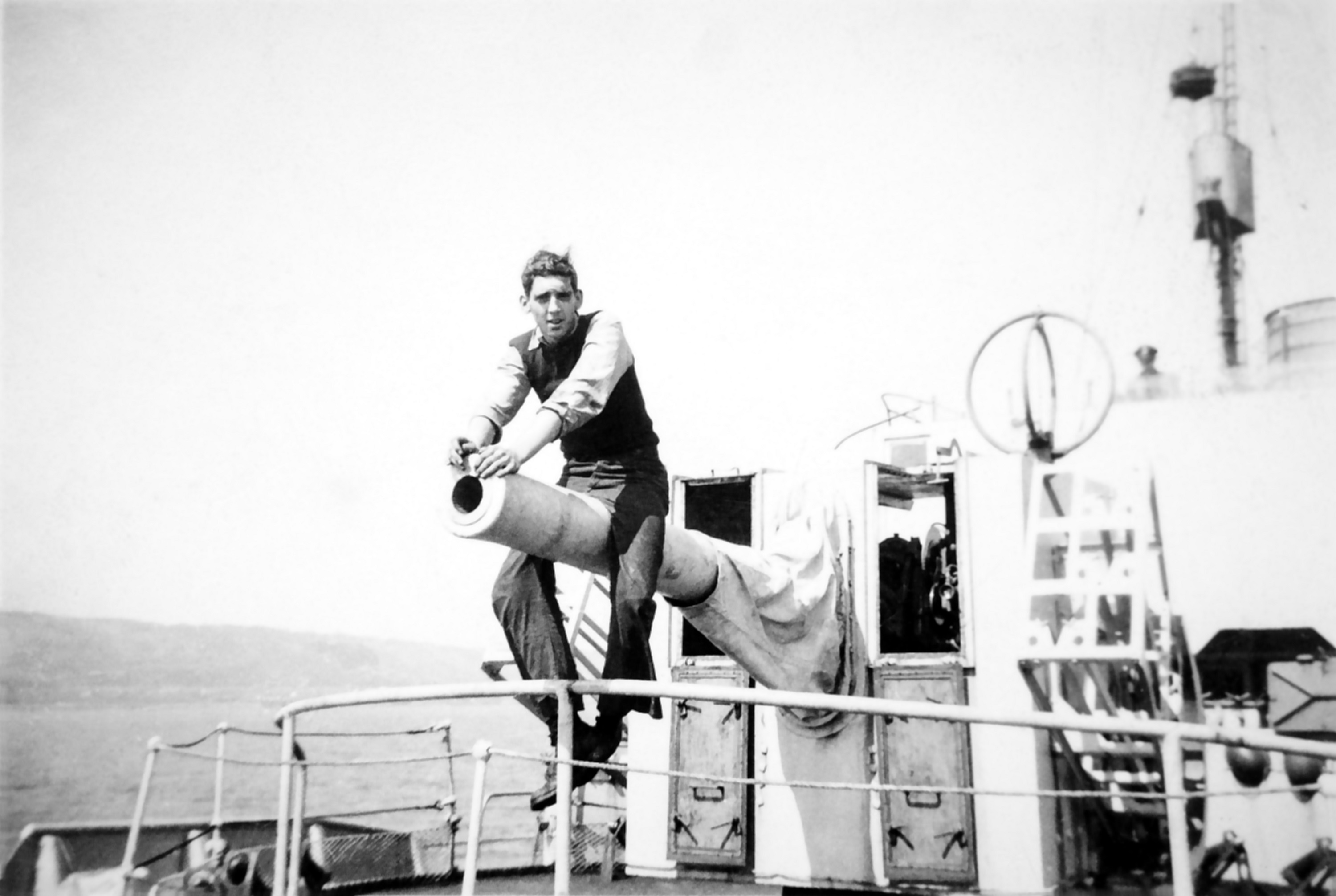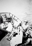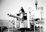 (JS13) Unidentified sailor at tot time - From the personal collection of John Frederick Simpson O/S 091424 (JS14) Unidentified sailors manning the MK VIII single pom-pom gun HMCS DUNDAS K229 during the training cruise in the Caribbean, circa 1945 (JS15) Unidentified sailors on HMCS DUNDAS K229 during training cruise in the Caribbean, circa 1945 (JS16) Unidentified sailor on the fo'c's'le of HMCS DUNDAS K229 during the training cruise in the Caribbean, circa 1945 (JS17) Unidentified ship in the gun sights of HMCS DUNDAS during the training cruise in the Caribbean, circa 1945