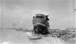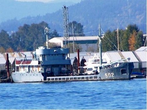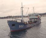 Commissioned on 25 Nov 1943, at Walkerville, Ont., DUNDURN provided warships, patrol craft and coastal outposts on the east coast with fuel. Here specifications were: Displacement: 950 tons, Length: 178 ft 9 in Beam: 33 ft 2 in, Draught: 13 ft, Speed: 10 kts, Complement: 12-24. In the later part of 1945 and most of 1946 she was used to off-load fuel from the escort vessels that were being mothballed. After this job was completed, in November 1946, she was transferred to Esquimalt with the tug Clifton. She arrived in Esquimalt on 29 Dec 1946 and was paid off on 02 Jan 1947 from the RCN to serve as a CNAV. Her duties were various, though primarily used as a inner harbour fuel ship, she sailed in company with the west coast fleet to San Diego on one occasion and on others took supplies up to removed governments outposts on the BC coast. Removed from service on 16 Sep 1996, she was declared surplus on 17 Nov 1995. After a short period of time, she was sold to the Burrard Yacht Club in Vancouver on 08 May 1996 to be used as a floating breakwater.