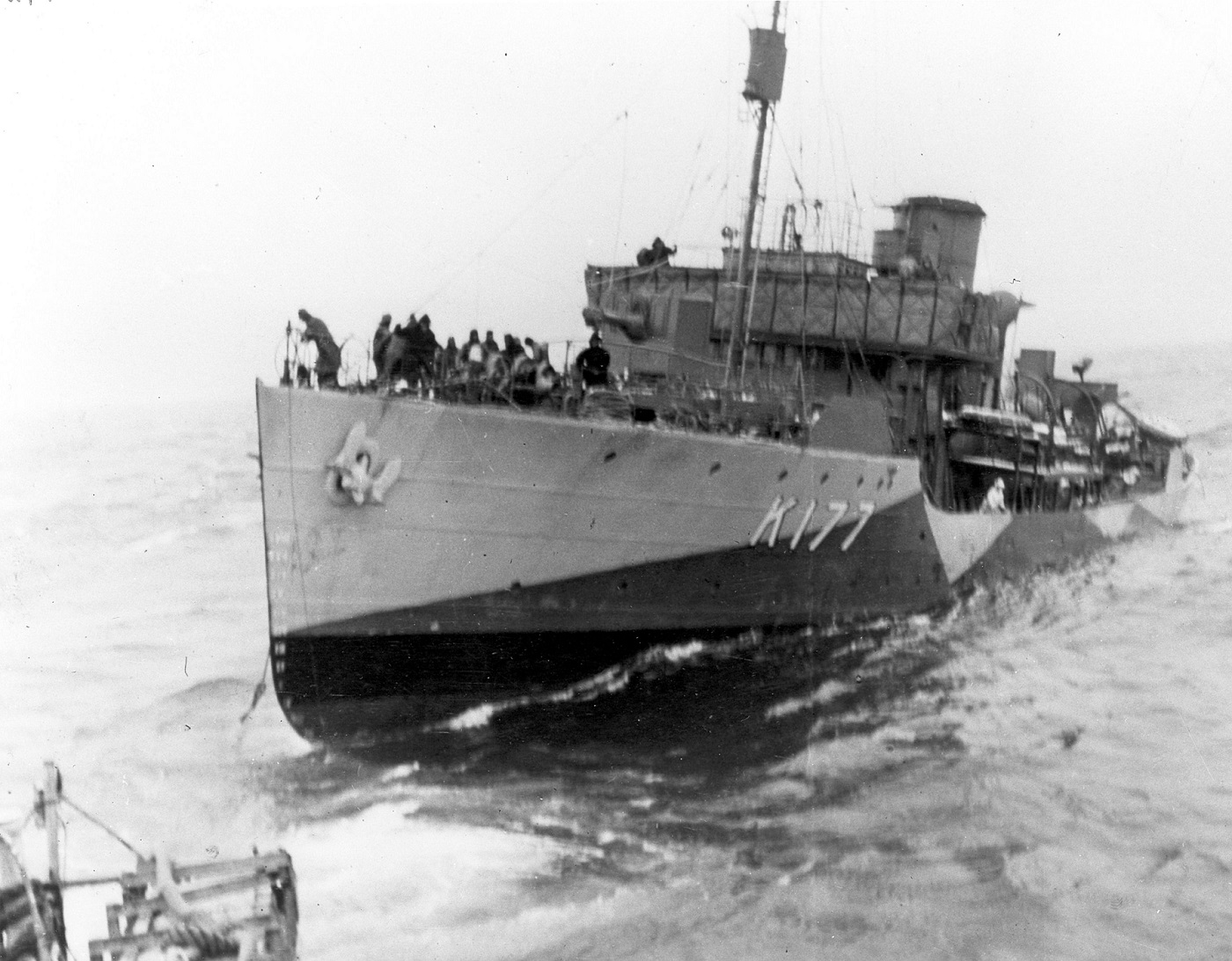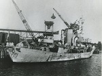 (DNV006) HMCS DUNVEGAN K177 on the Dartmouth slips, Halifax Shipyards - circa Jan 1942 // Photo taken from HMCS BADDECK K147, also on the Dartmouth slips // From the collection of Kenneth Medford // Courtesy of Gary Medford (DNV007) HMCS DUNVEGAN K177 on the slips in refit // From the photo collection of Gerald (Jerry) Cox, RCNVR // Courtesy of Sean Cox (DNV008) Lt. John E. Heward, HMCS ROCKCLIFFE; Lt. Bob Hunter, HMCS DUNVEGAN; LCdr Richard (Dick) Williams, HMCS SASKATOON; LCdr Jim Pratt HMCS OSHAWA (OTC), on board U 889 in Halifax May 1945 // From the collection of John Edisforth Heward // Courtesy of Roger Heward