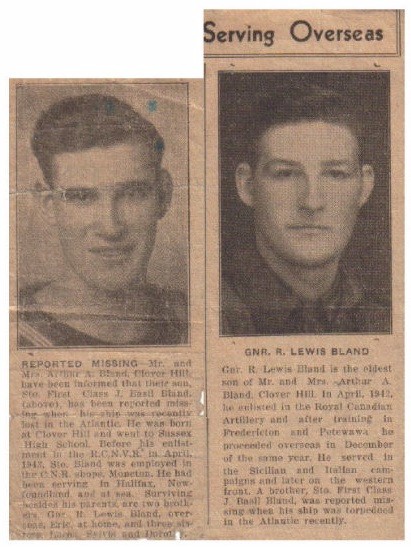 Newspaper article Stoker John Bland reported missing after sinking of HMCS ESQUIMALT