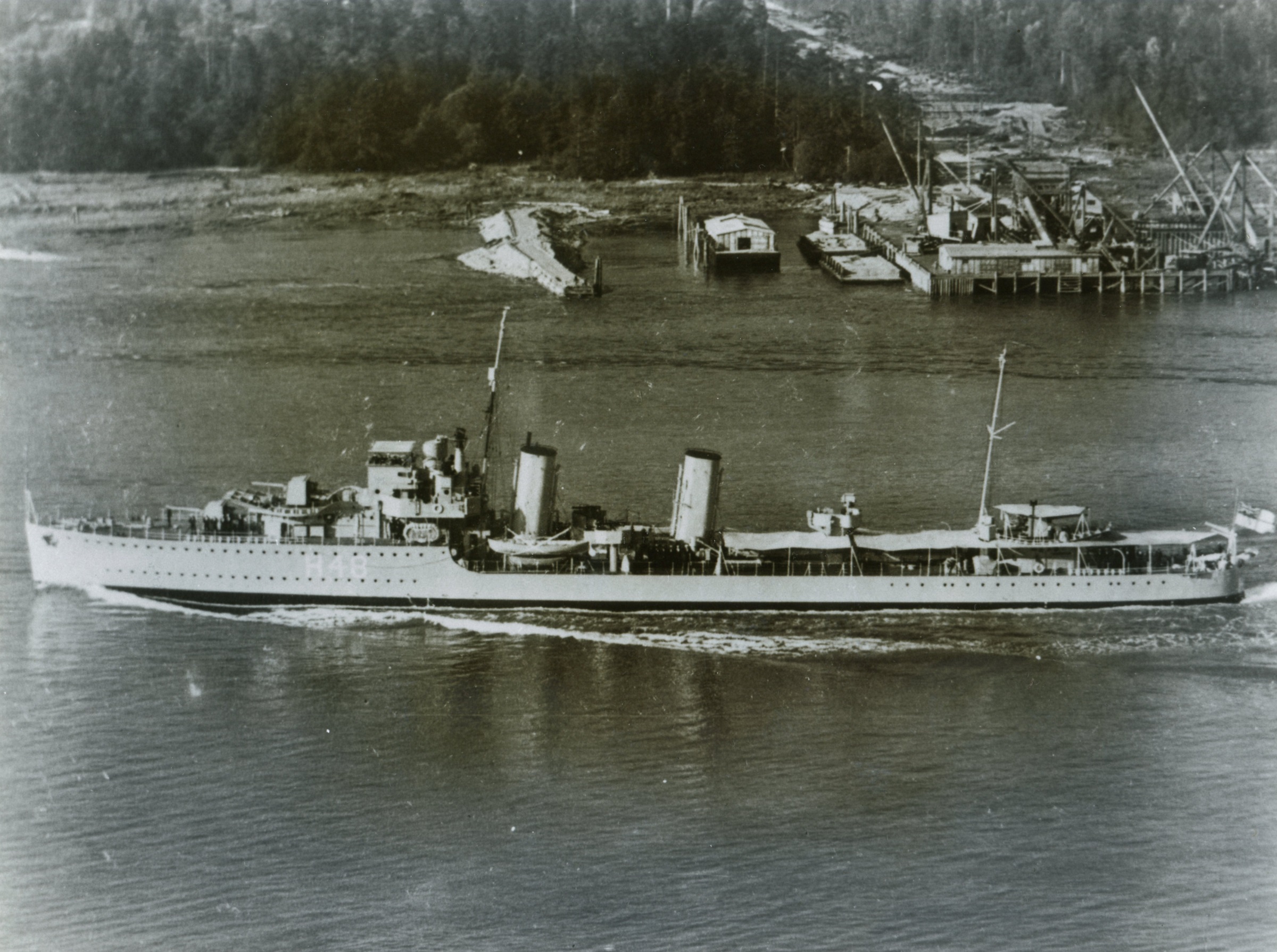 Other activities of the FRASER included the embarkation of Lord Tweedsmuir, Governor-General of Canada, during his 1937 visit to British Columbia; participation in the escort of President Roosevelt during his visit to the province in September of the same year, and in the four-destroyer escort of Their Majesties King George VI and Queen Elizabeth during their crossing to Victoria in May, 1939, during the Royal visit. A little over three months later, Canada was at war. On August 31, four destroyers, FRASER, OTTAWA, ST LAURENT and RESTIGOUCHE, lay at anchor just off Coal Harbor in Vancouver, where they were to take part in the celebrations for the city's annual exhibition.