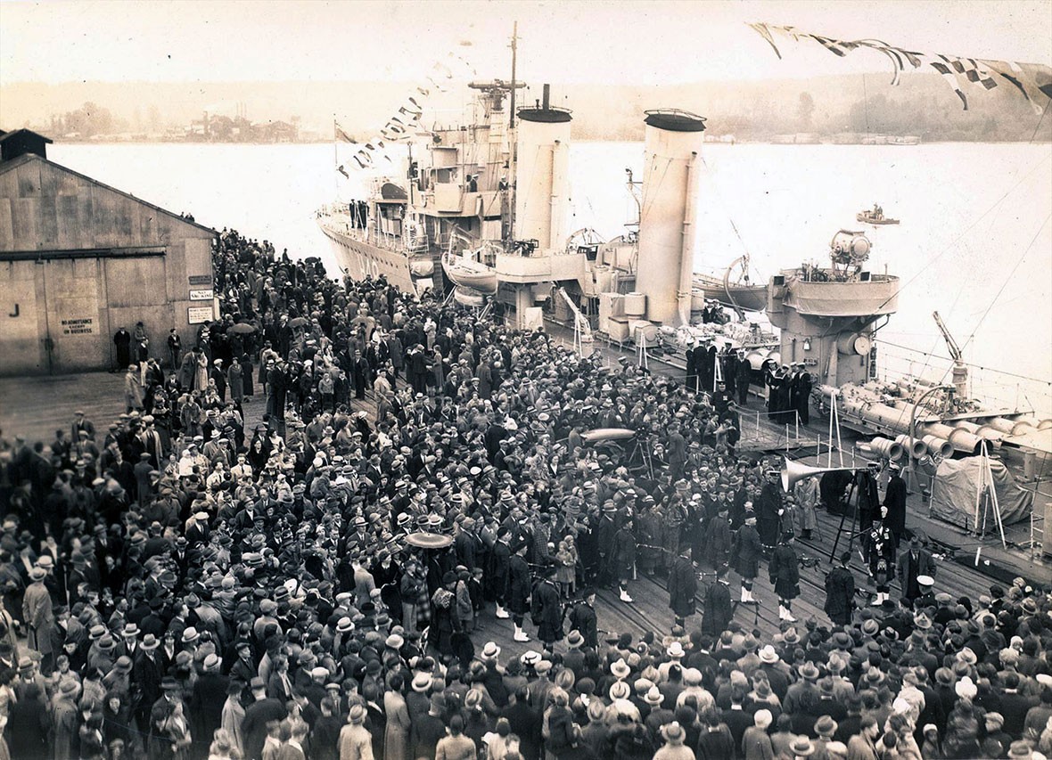 (FSR001) The commissioning of HMCS Fraser at Chatham United Kingdom on her transfer from the Royal Navy 17 February 1937 // RCN photo
