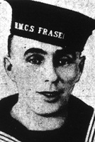 "Farewell to Seattle" - In happier times - HMCS FRASER sailors Seaman Kenneth Kyle (right) and friend Willie (William Goldsmith) Excerpt from a unknown newspaper: "Netha Silver and Thelma Mc Donald, two Halifax girls, heard together the news that their fiances were missing. Dan Willis, of Hanna, Alta., and Ken Kyle, of Moose Jaw, had planned to be married in a double wedding when the Margaree arrived in port. Archie Kennedy, of Victoria, B.C., who was to have been best man, died in the FRASER sinking, which the two other sailors survived." From the collection of Kenneth Kyle Courtesy of Maureen Pepin