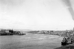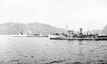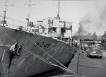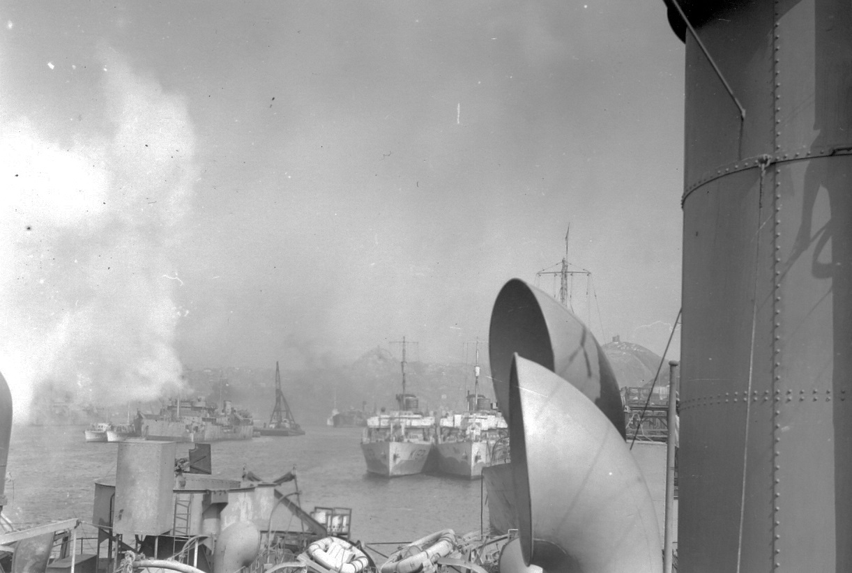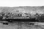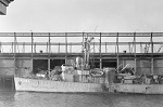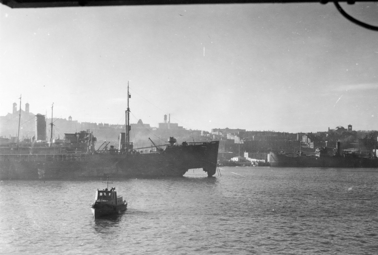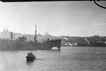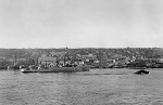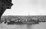 (CA139) HMS HASTING U27 in harbour at St. John's (CA140) HMCS AVALON II - depot / accommodation ship at St. John's (CA141) Torpedoed merchantman in harbour awaiting repairs at St. John's (CA142) Warships in St. John's Harbour. HMCS PROVIDER F94 at anchor with Fairmiles and a derrick barge secured alongside her (CA144) St. John's, Newfoundland with an unknown warship tied up at the jetty