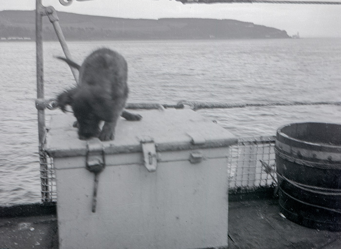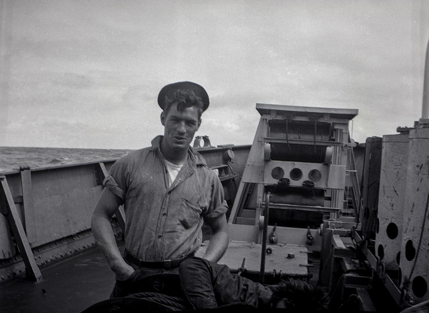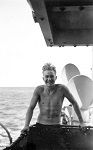 (CA74) Charles Atkins on the fo'c's'le of HMCS FREDERICTON K245 (CA75) Unknown sailor on the fo'c's'le of HMCS FREDERICTON K245 (CA76) Charles Atkins in the radio room of HMCS FREDERICTON K245 (CA77) Charles Atkins with the ship's mascot looking out the scuttle of the radio room on HMCS FREDERICTON K245 (CA78) Charles Atkins (foreground) enjoying some Caribbean sun on the fo'c's'le of HMCS FREDERICTON K245