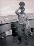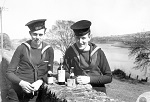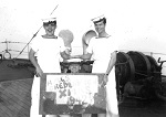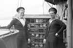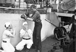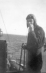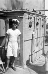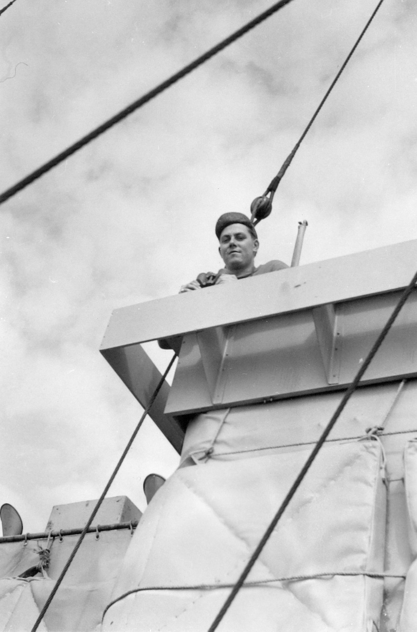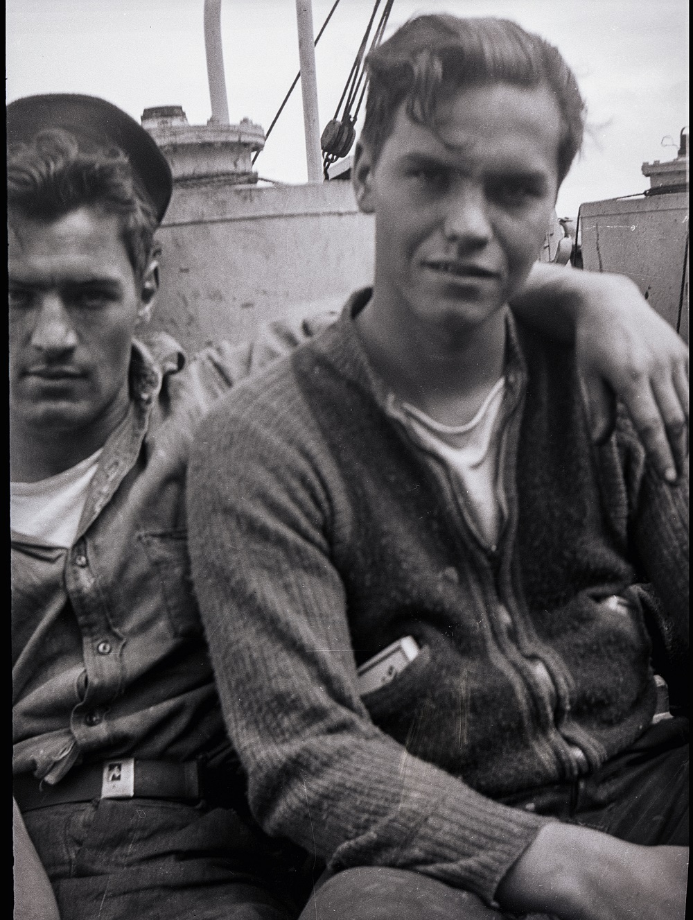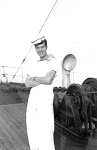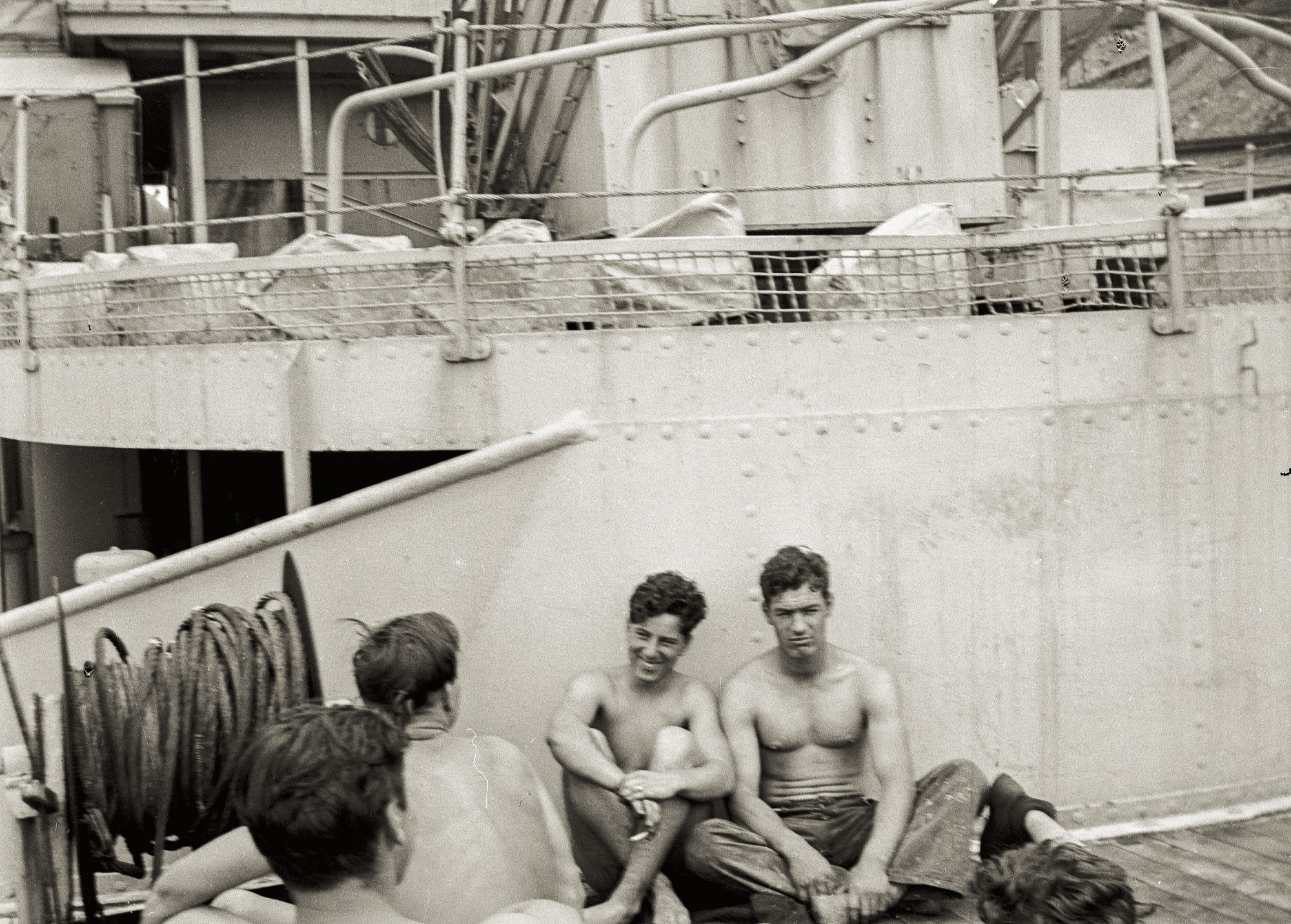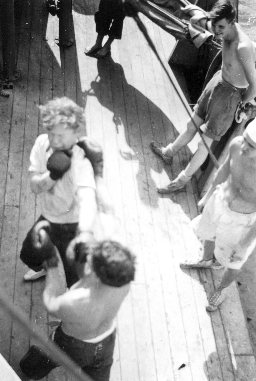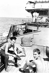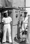 (CA94) Unknown sailor on HMCS FREDERICTON K245, Cuba (CA95) Seymore (left) and Gunnery Officer Hardy on HMCS FREDERICTON K245, Cuba (CA96) Swales on lookout on HMCS FREDERICTON K245 (CA97) Robinson and Fraser (closest with back to camera) having a friendly match on HMCS FREDERICTON K245 (CA98) Unknown officer and sailor on HMCS FREDERICTON K245, port side just aft the gun deck. It looks like the officer is squaring off for some fisticuffs