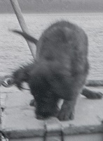 (CA131) Ship's mascot sitting on a receiver in the Radio Room of HMCS FREDERICTON K245 (CA132) Charles Atkins at the signal light on HMCS FREDERICTON K245 (CA133) Unknown sailor reading a book on the bridge of HMCS FREDERICTON K145 - This photo was taken after her refit from Jun-Oct 1943.