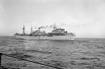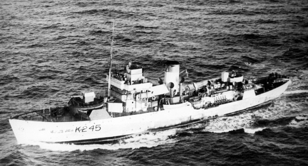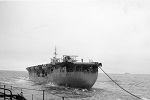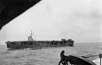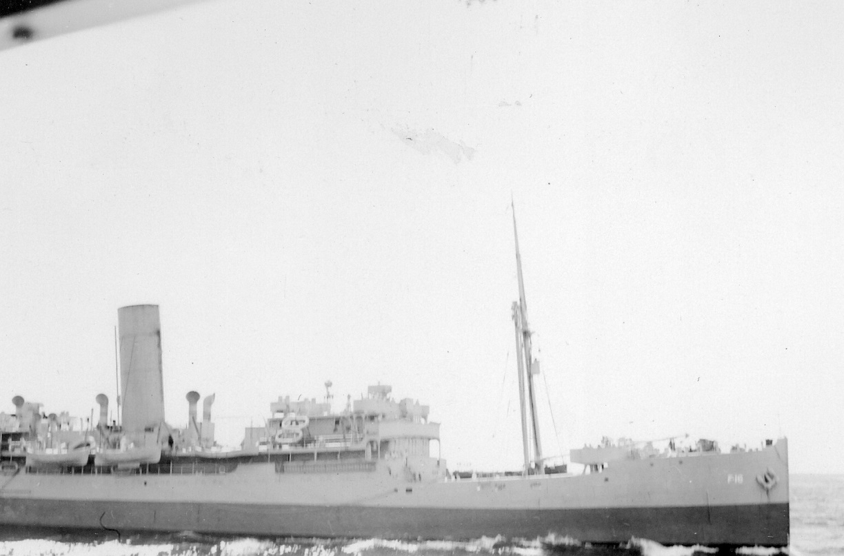 (CA65-CA68) Unknown US merchantman passes by HMCS FREDERICTON K245