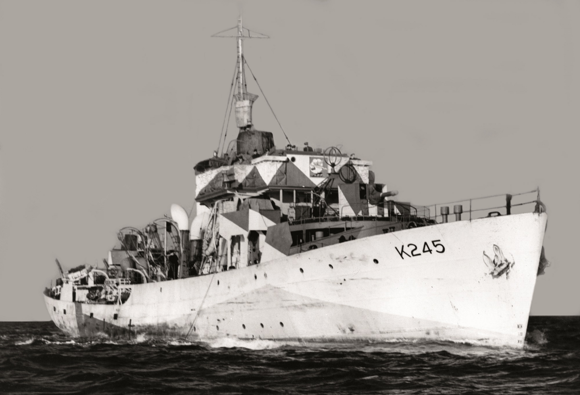 (CA32-CA33) HMCS FREDERICTON K245 (RCN photos) (CA34) HMCS FREDERICTON K245 - Nov 1943 (RCN photo) (CA35) Gunshield art of HMCS FREDERICTON K245 moved to the bridge face