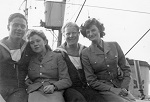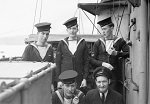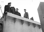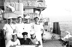(CA44) Unknown sailors on the flag deck of HMCS FREDERICTON K245 - The 3 standing are Telegraphists (CA45) Unknown sailors on the flag deck of HMCS FREDERICTON K245 - the sailor on the left is a Signalman (CA46) Unknown sailors on the flag deck of HMCS FREDERICTON K245 - The 3 standing are Telegraphists (CA47) Unknown sailor on the flag deck of HMCS FREDERICTON K245