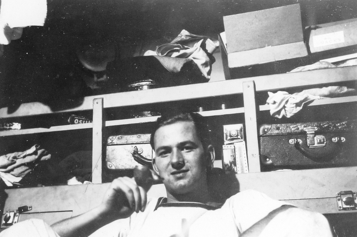 (CA48) A.J. Moore in the wheelhouse of HMCS FREDERICTON K245 (CA49) Unknown sailor in the wheelhouse of HMCS FREDERICTON K245 (CA50) Bob Mattson on HMCS FREDERICTON K245 (CA51) Jim Turner in a mess deck on HMCS FREDERICTON K245 (CA52) Statebury in a mess deck on HMCS FREDERICTON K245