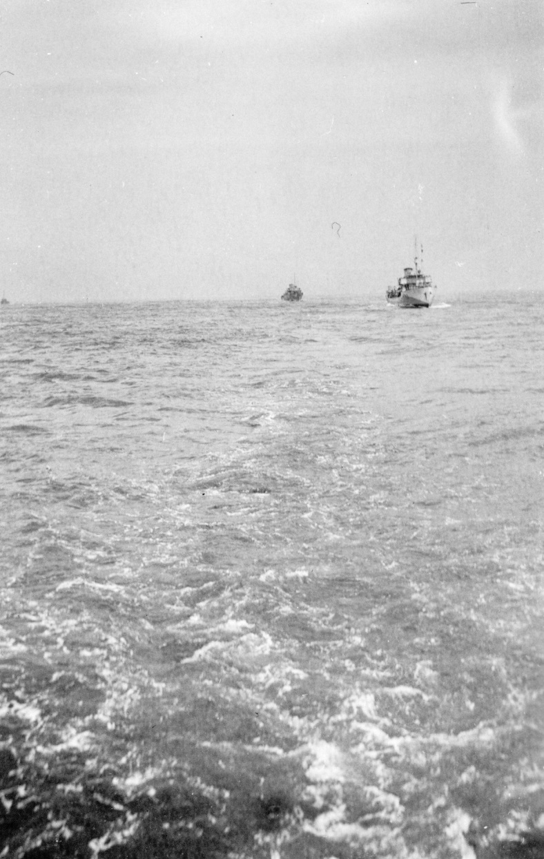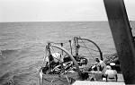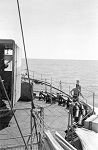 (CA104-CA105) A calm day at sea. Sailors on the port and starboard side of the fo'c's'le of HMCS FREDERICTON K245 (CA106-CA107) A couple flying fish whose day didn't end so well on HMCS FREDERICTON K245