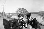 (CA128) Charles Atkins (left) and 2 shipmates ashore in Northern Ireland (CA129) Charles Atkins and shipmate ashore in Northern Ireland (CA130) Two sailors from HMCS FREDERICTON K235 ashore (with Charles Atkins) in Northern Ireland