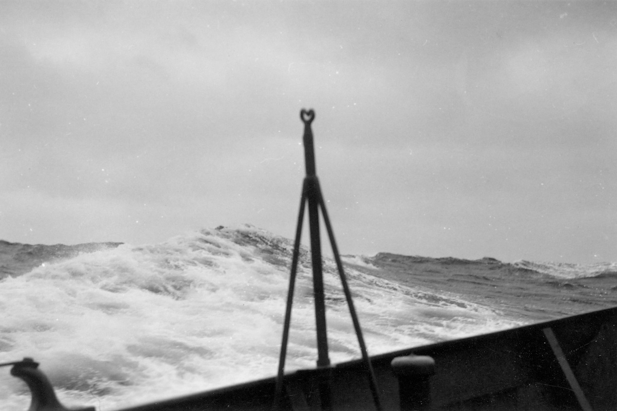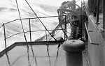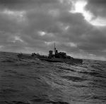 (CA158-CA159) HMCS FREDERICTON K245 in heavy seas in the North Atlantic (CA160) HMCS FREDERICTON K245 preparing to launch the ship's boat. Unknown coastline in the background (CA161) Unknown sailor on the after end of the boat deck on HMCS FREDERICTON K245 (CA162) Unknown sailor on HMCS FREDERICTON K245
