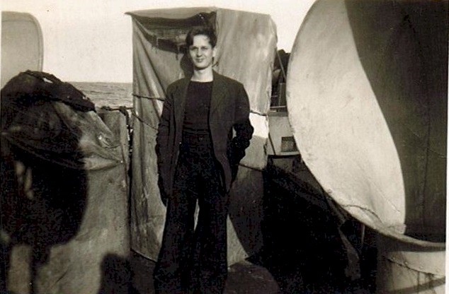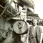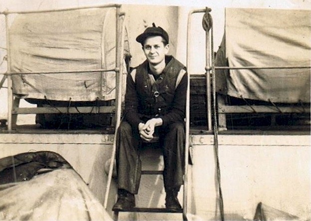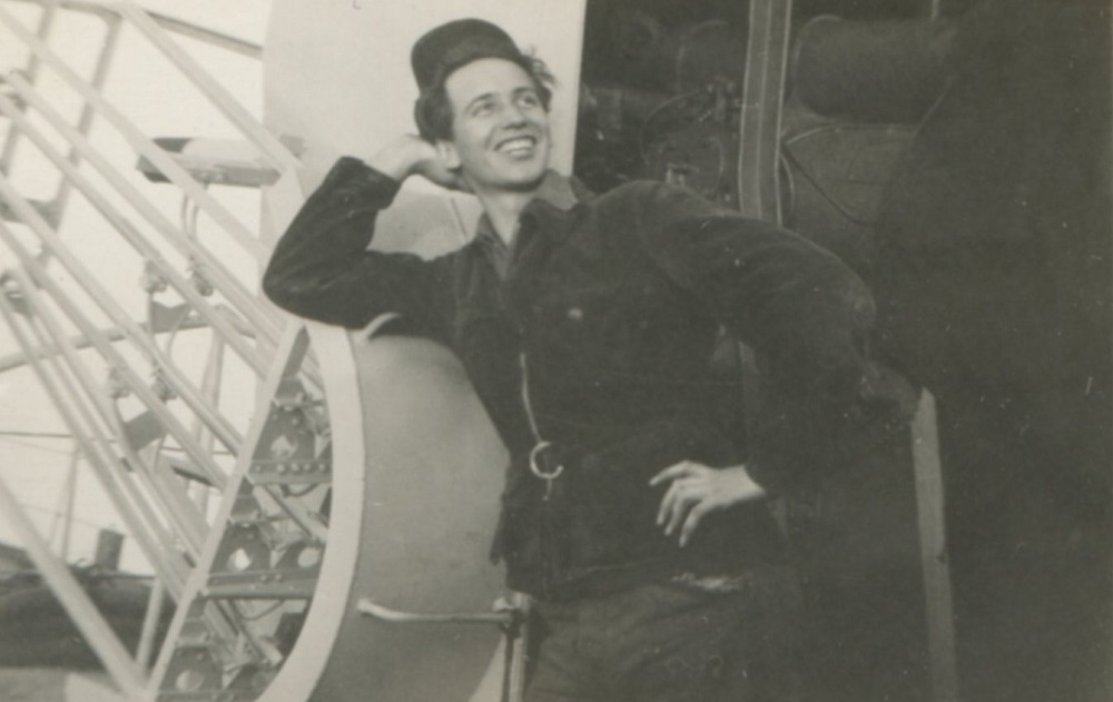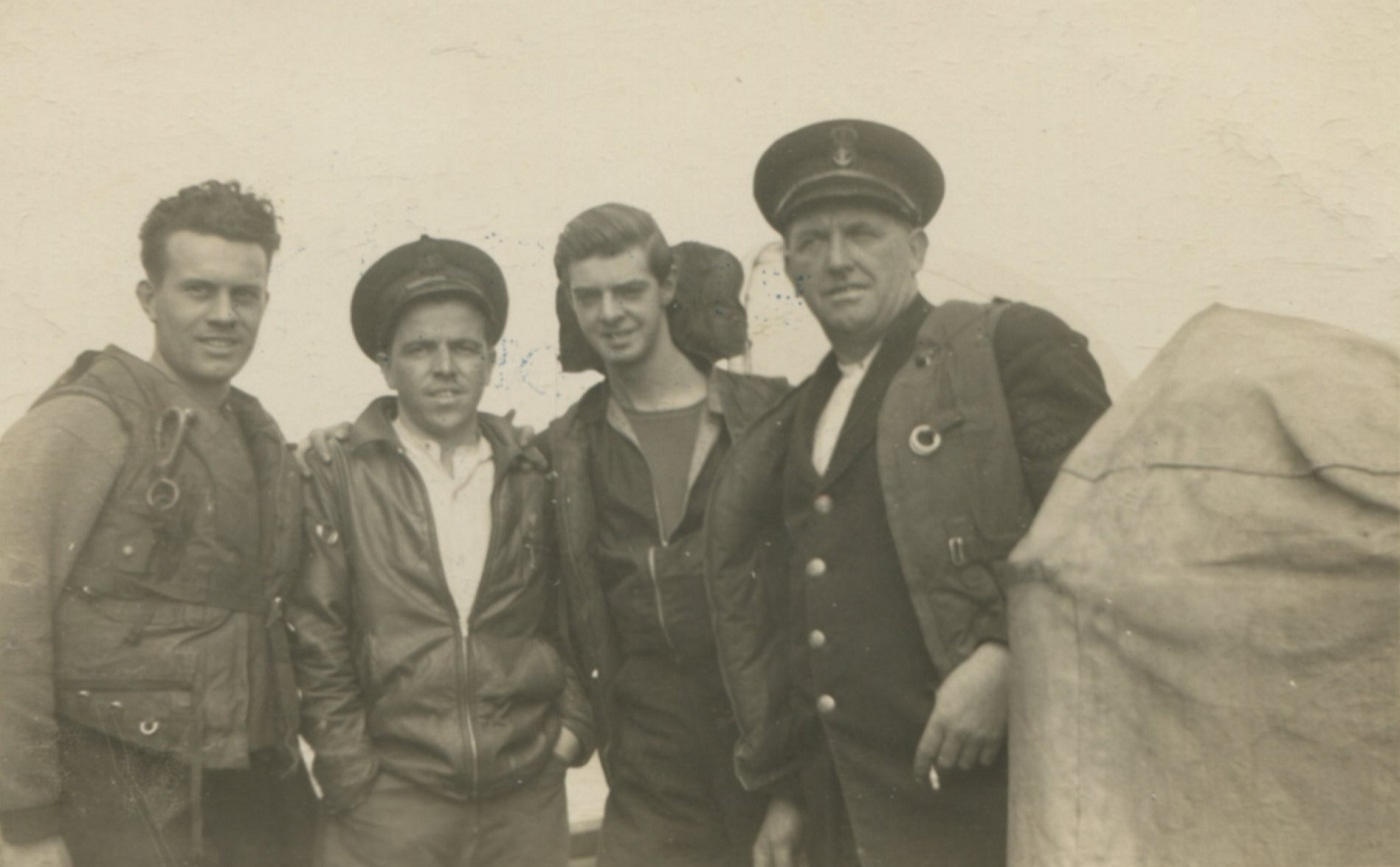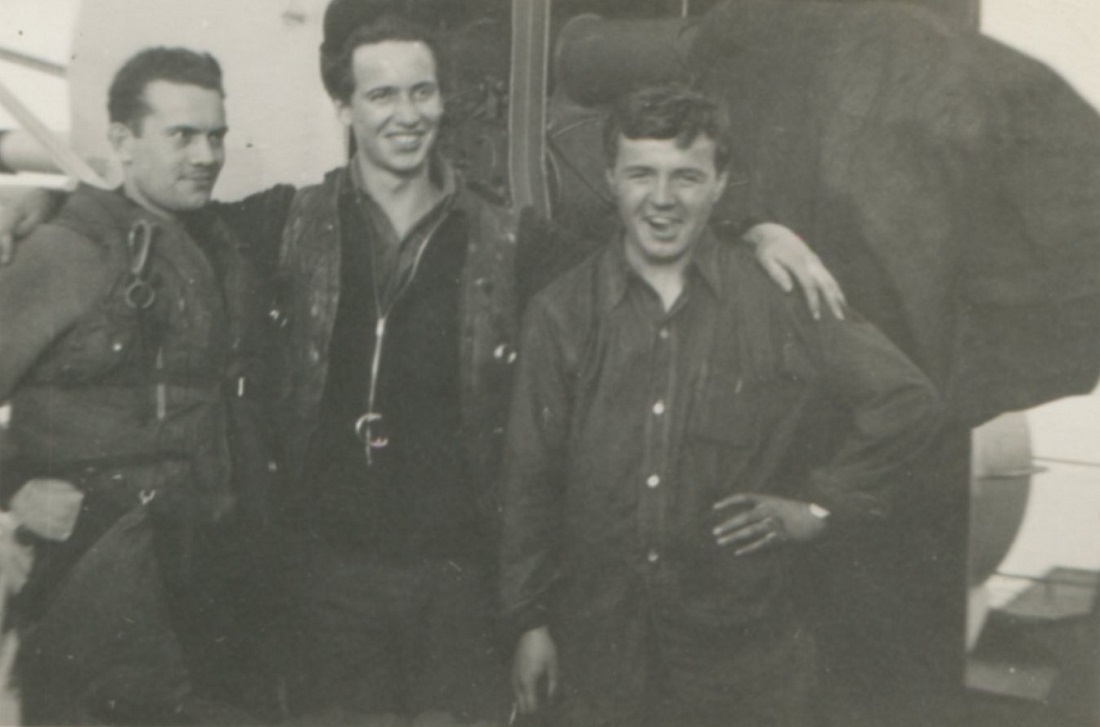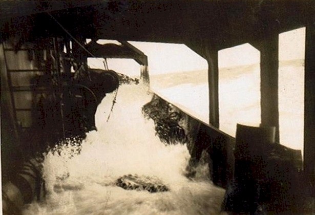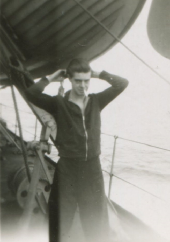 (JB11) John Boothman on HMCS FRONTENAC (JB12) John Boothman on HMCS FRONTENAC, Dec 1944 (JB13) John Boothman and shipmates - Robert S. Brown 1st on right (JB14) Engineroom hatch on HMCS FRONTENAC, STBD side aft looking forward (JB15) HMCS FRONTENAC in bad weather - Port side mid ships looking aft