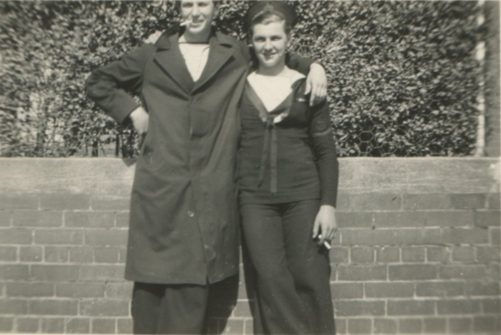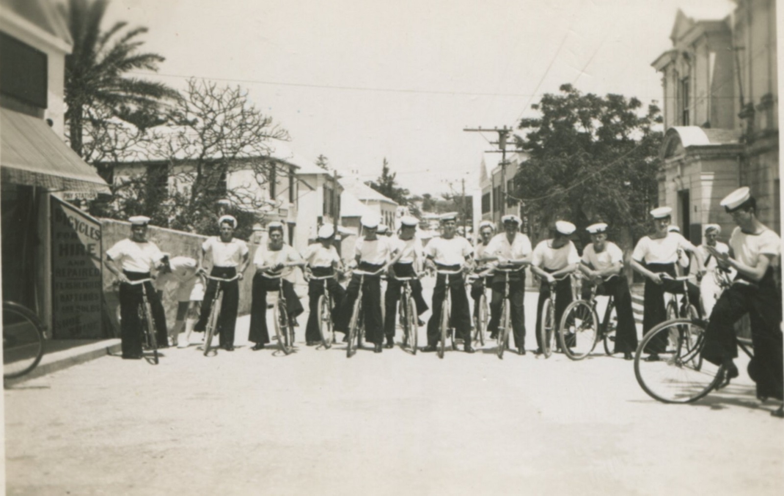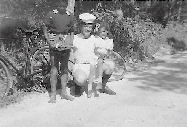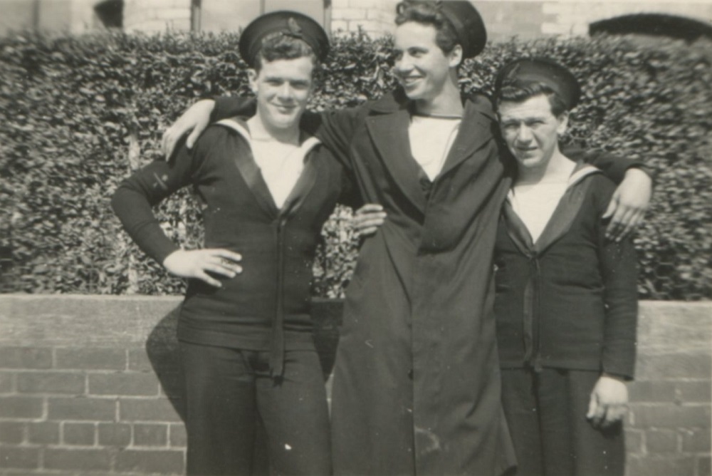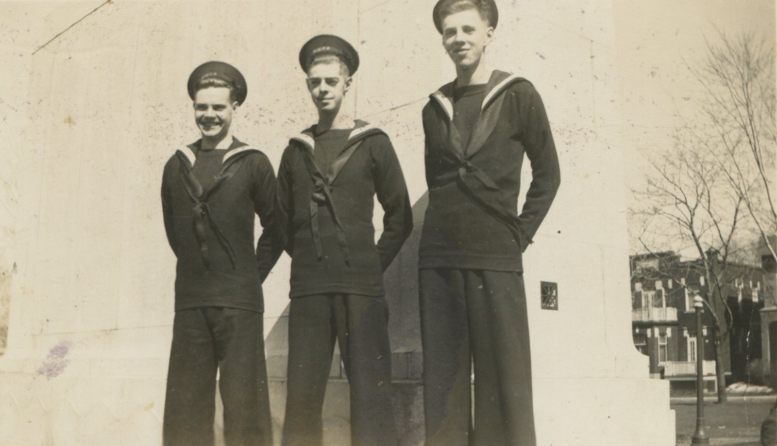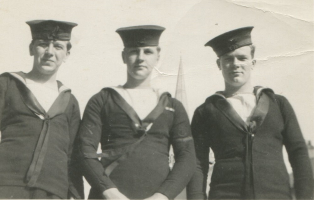(GS63) Gilbert Smith ashore - location unknown (GS64) FRONTENAC sailors ashore - Gilbert Smith centre Photos from the collection of Coder Gilbert John Smith, RCNVR Courtesy of Sharon Wing