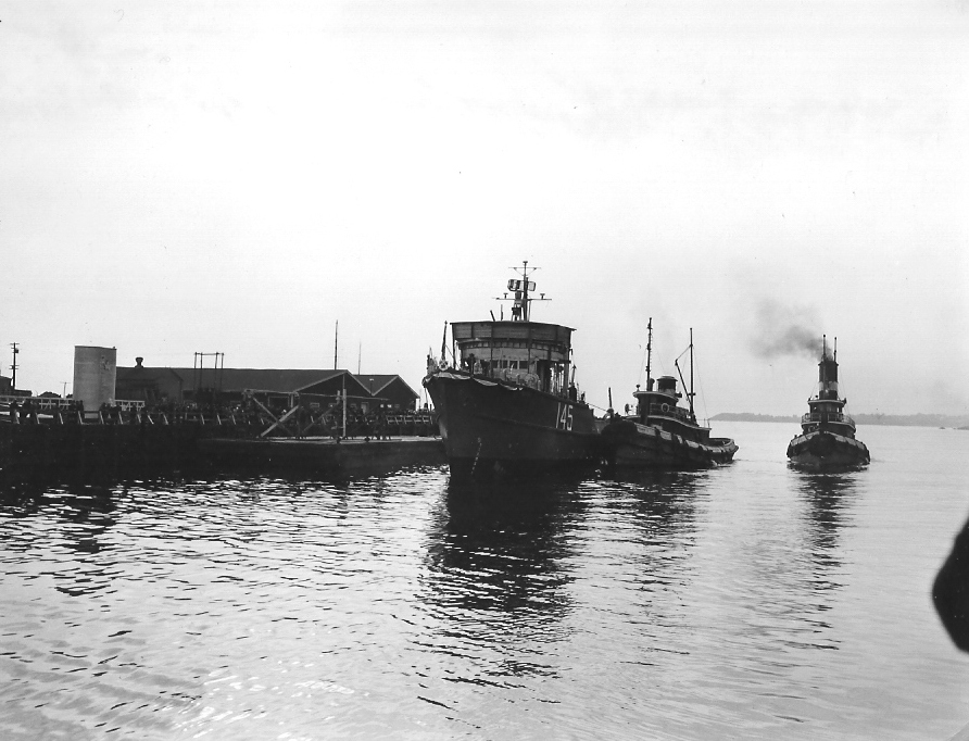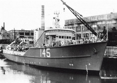 Built by the Saint John Dry Dock Co., she was commissioned on 19 Mar 1954. Paid off on 31 Mar 1954, she was transferred to the French Navy on the same day and commissioned as the "dragueur" La Dunerquoise M726. On 01 Jun 1973 she was re-classed as a "patrouilleur" with pendant number P653. She was paid off on 15 Oct 1986 and sunk as a target ship on 20 Dec 1986 in 2500 meters of water 22 miles off the coast of Dumbéa, New Caledonia.