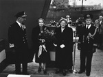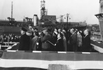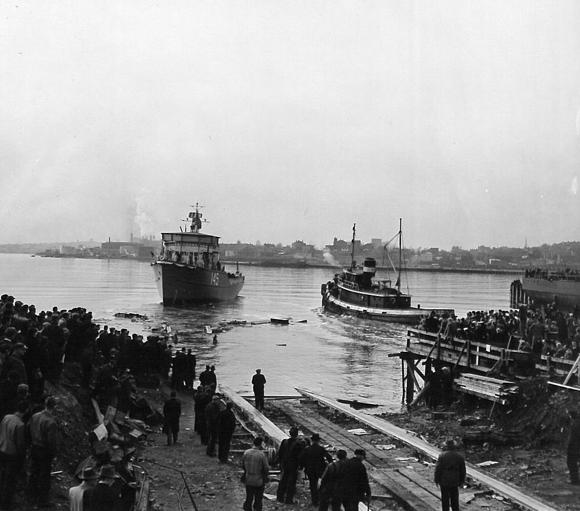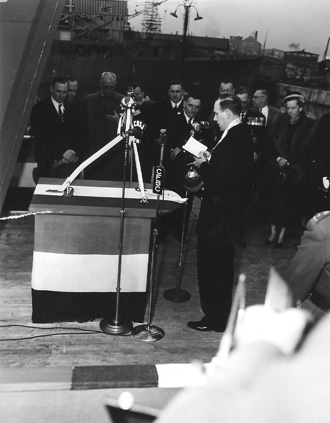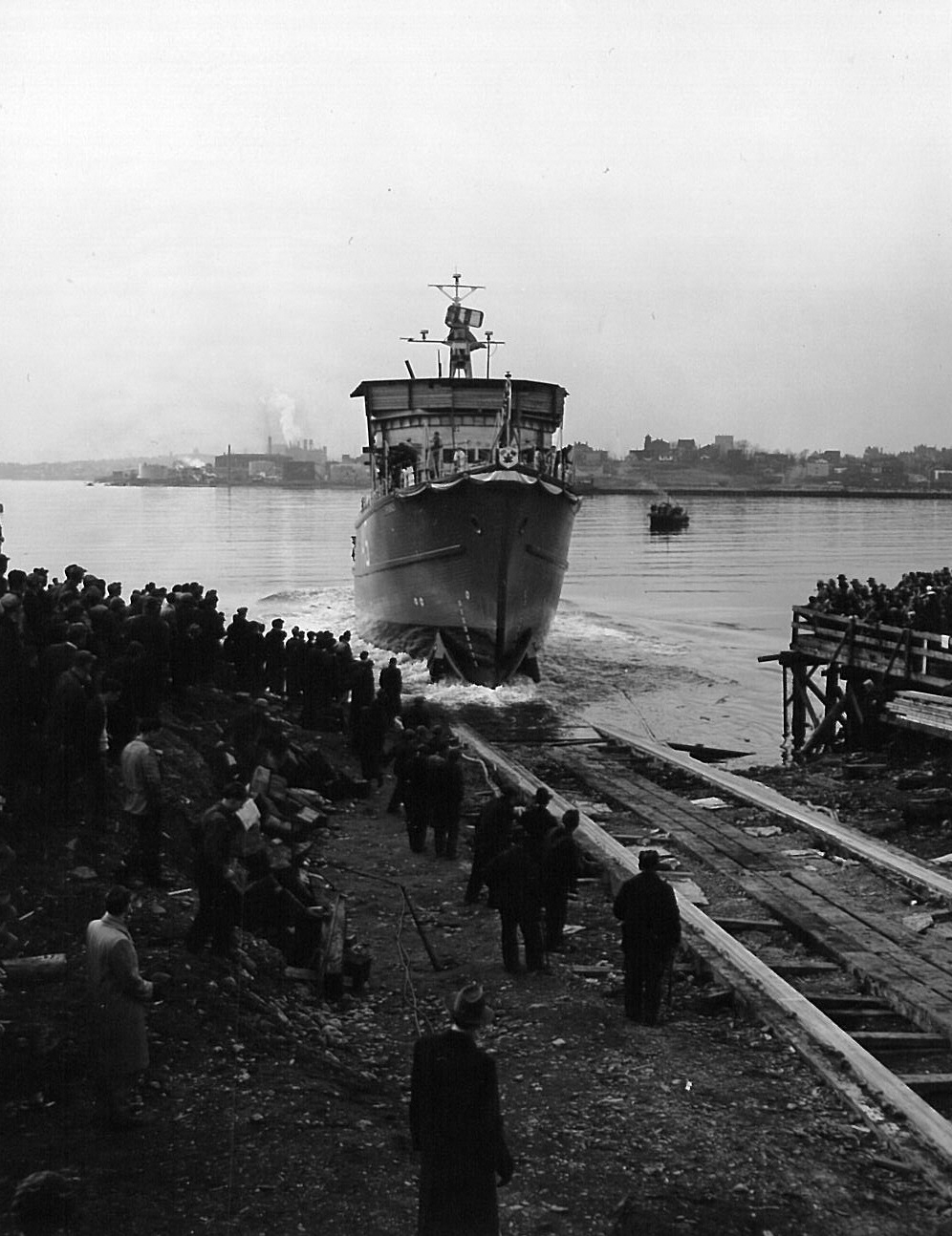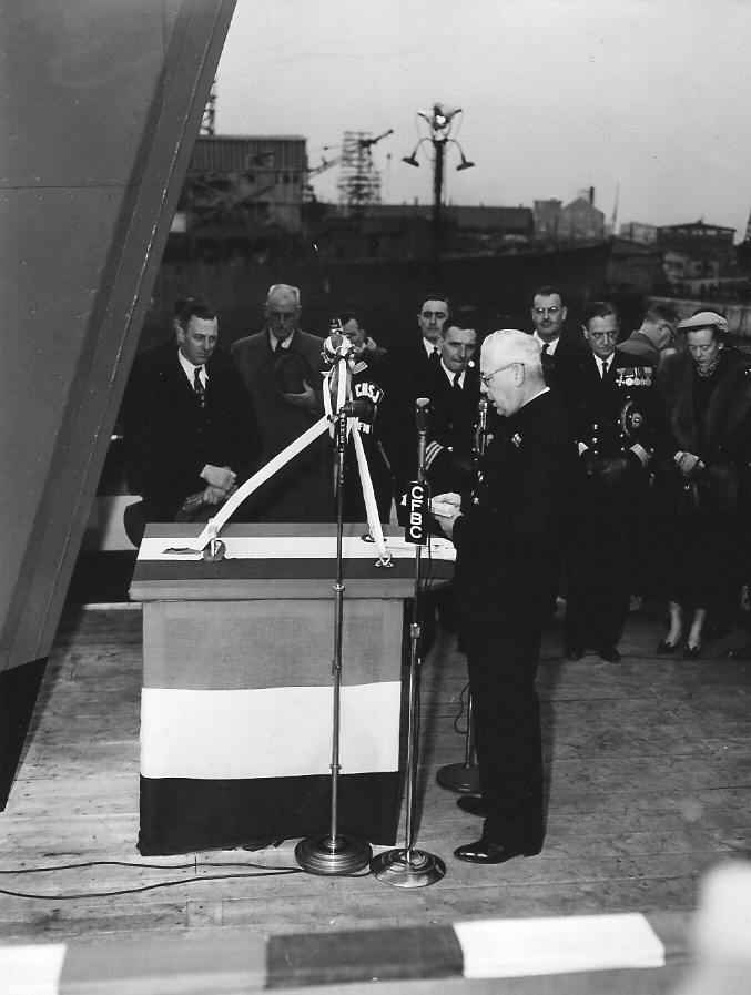 The launching ceremony of HMCS Fundy 145 - 09 Dec 1953 Photographer: Eugene Miller, RCN Courtesy of Rene Miller