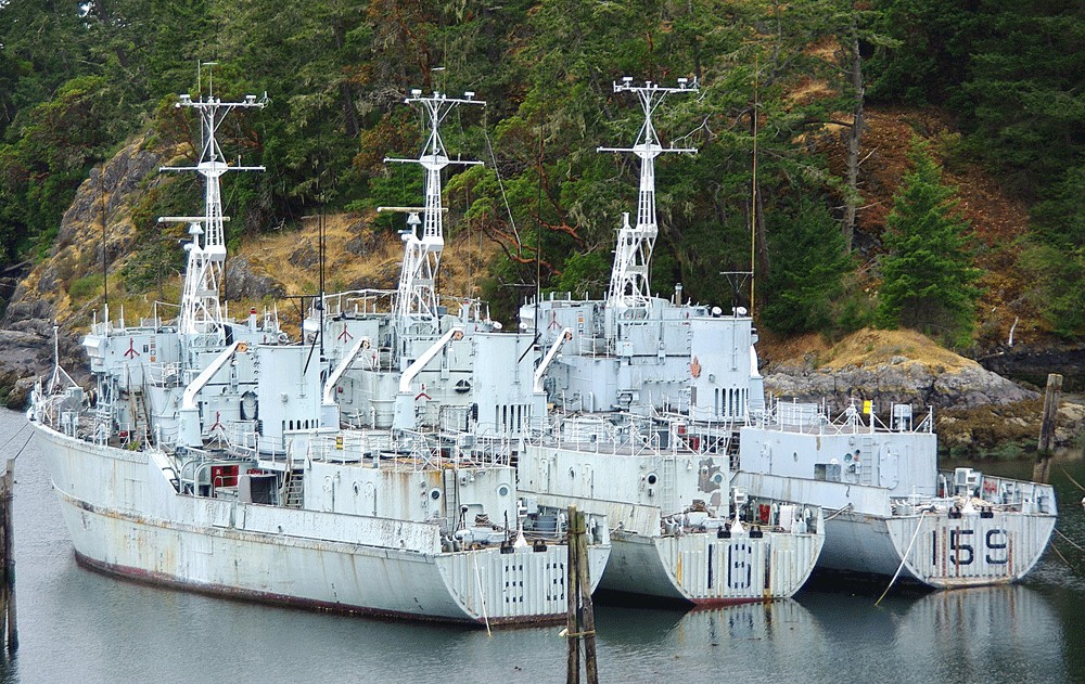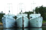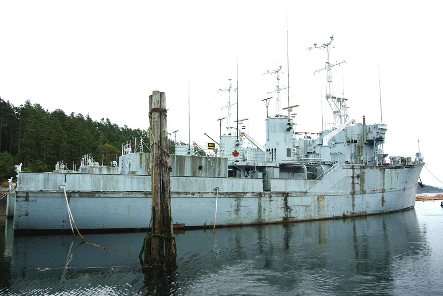 (ChS001 - ChS005) Former HMCS MIRAMICHI 163, HMCS THUNDER 161 and HMCS FUNDY 159 at Beecher Bay, BC circa 2008 before being broken up at Surrey, BC. Photographer Chris Sattler / © 2008 Courtesy of Dave Shirlaw