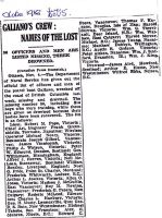 Newspaper transcriptions about the loss of HMCS GALIANO
