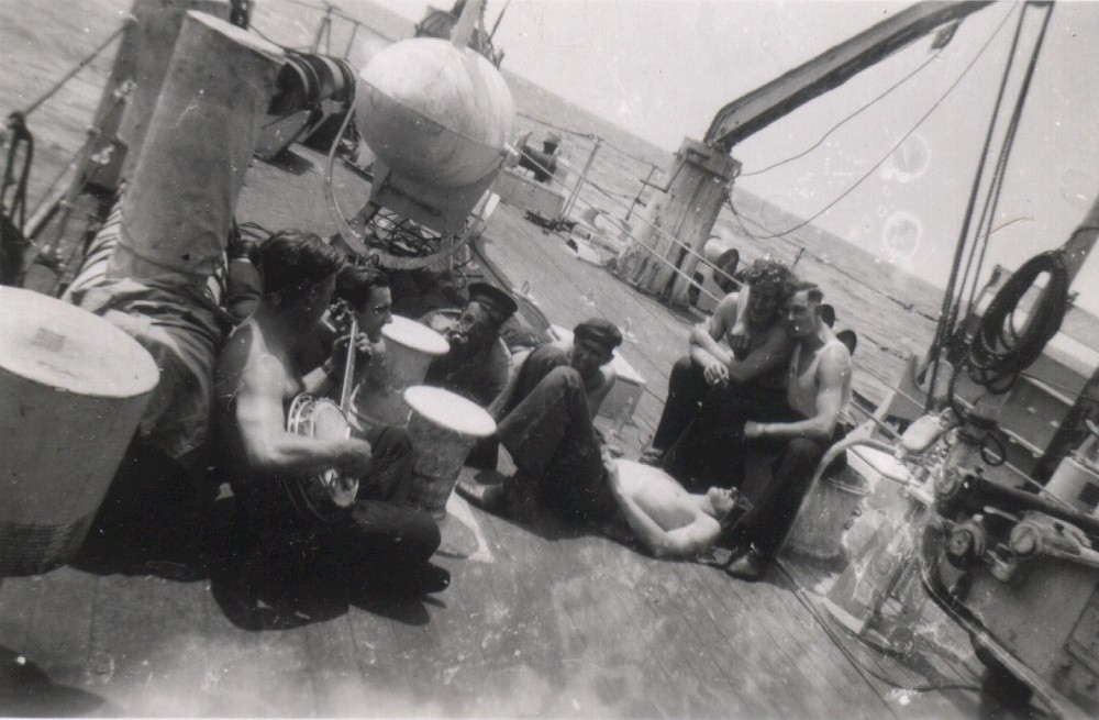 R & R on the sweepdeck of HMCS GANANOQUE J259