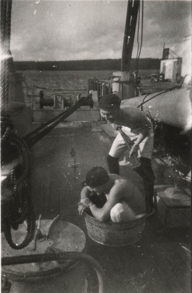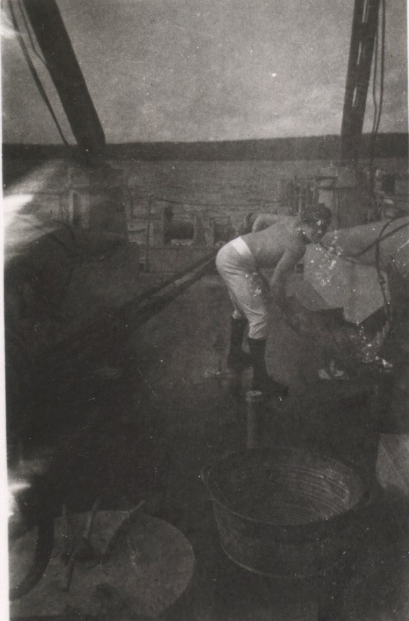 Jacking around while scrubbing the deck on HMCS GANANOQUE