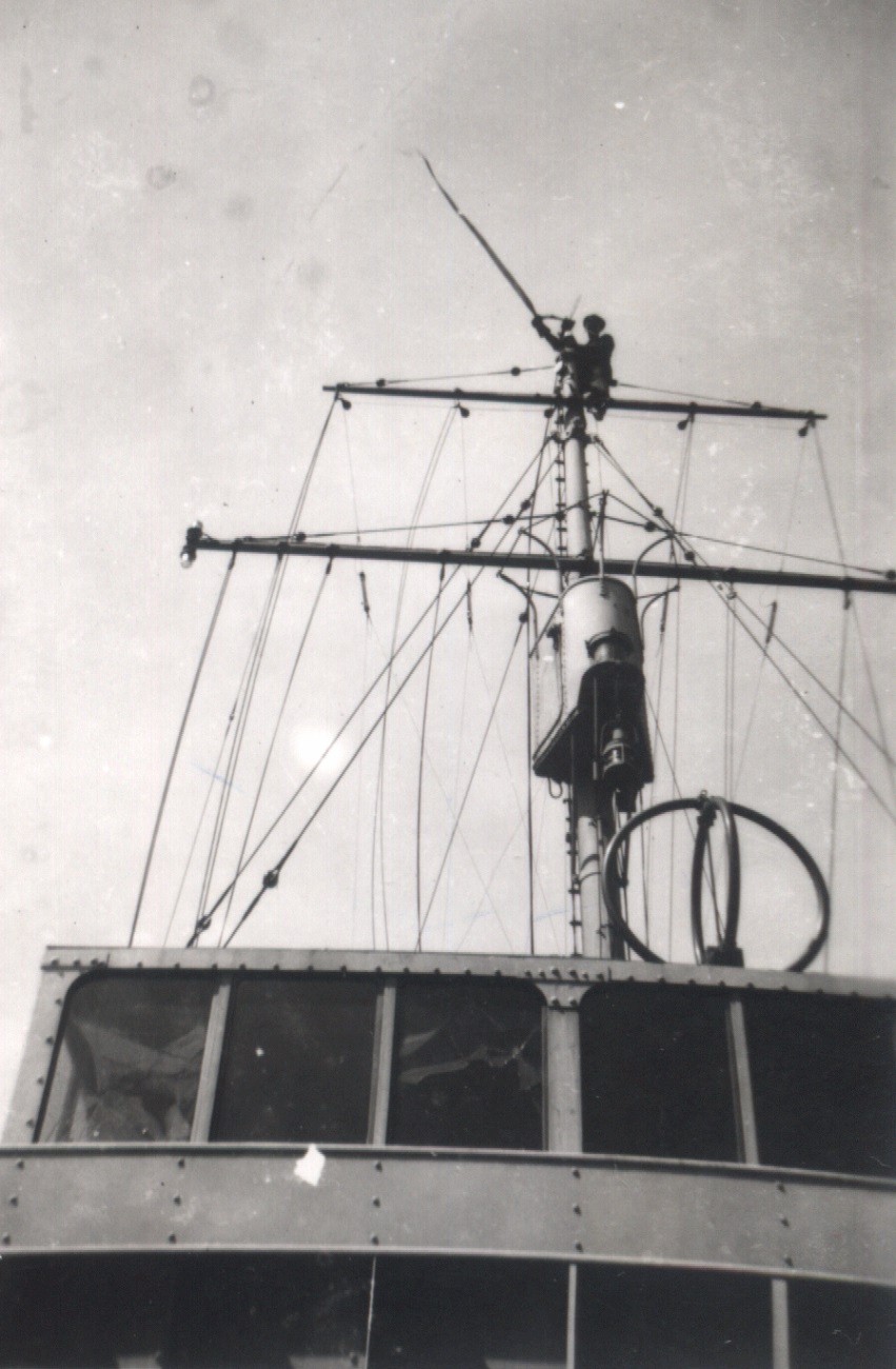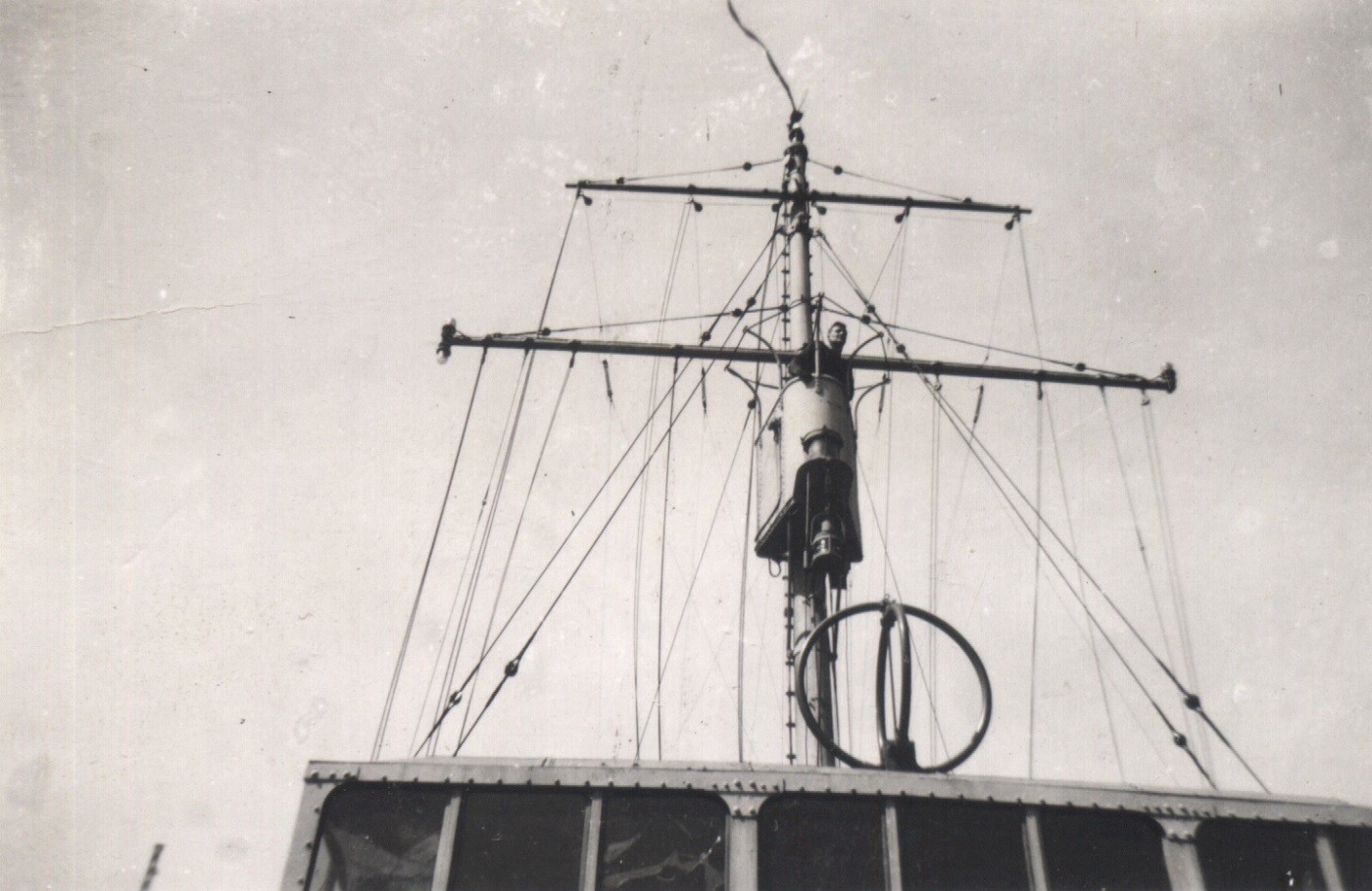 Unknown sailor in the crows nest on HMCS GANANOQUE