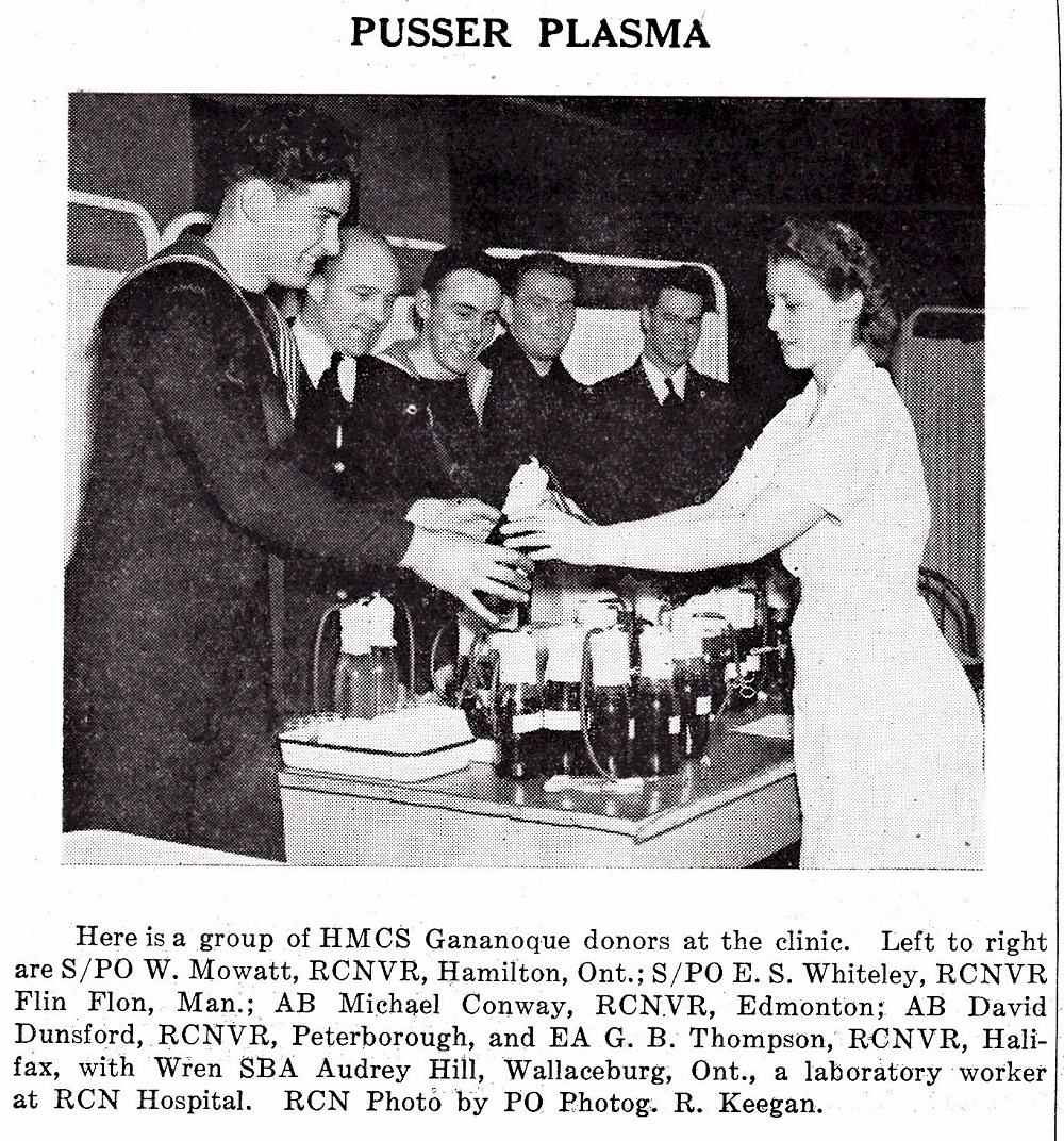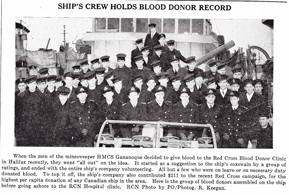Article on HMCS GANANOQUE crew donating blood