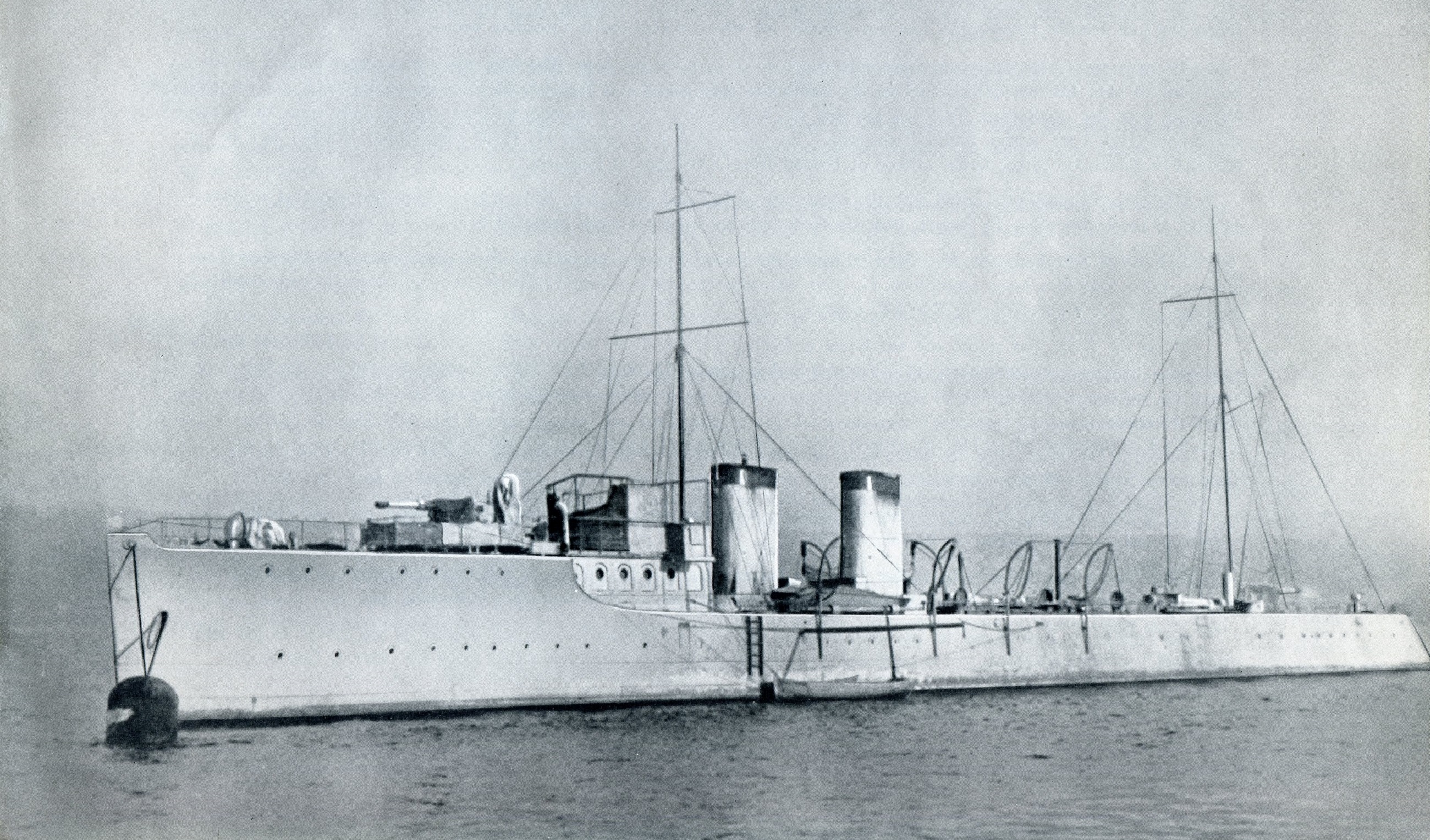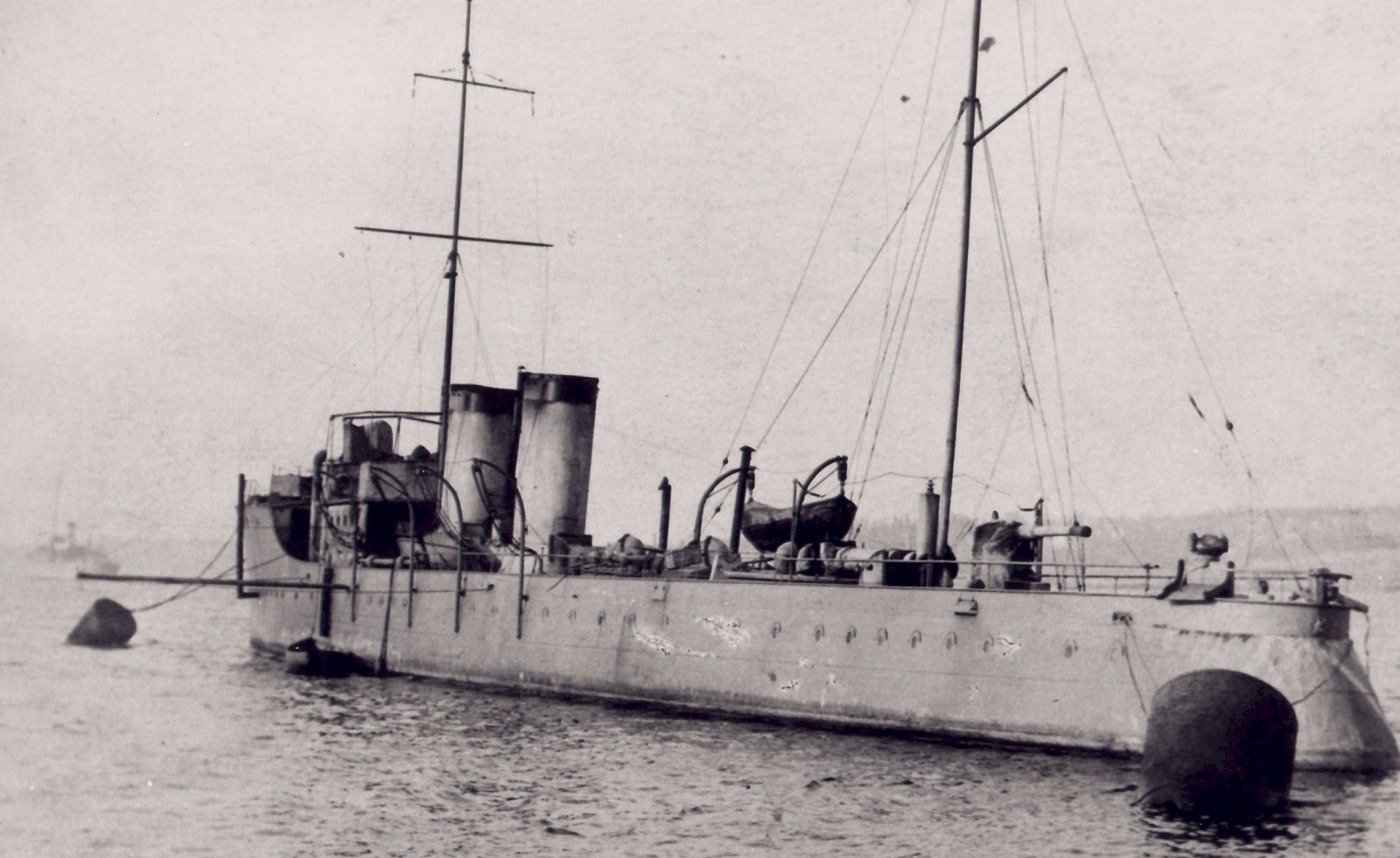 Built by Yarrow & Co., Glasgow, Scotland, HMCS GRILSE was the Royal Canadian Navy's closest ship to a destroyer during the First World War. In Jun 1915, millionaire Jack Ross purchased the Winchester, one of the fastest civilian yachts in existence, from the United States and brought it to Canada. Commissioned as HMCS GRILSE in Jul 1915, and with Ross in command, the ship was refitted and armed at the Canadian Vickers shipyard in Montreal before sailing to Halifax to start carrying out patrols. Easily the fastest ship in the Royal Canadian Navy (RCN), GRILSE could reach speeds of more than 30 knots (55 km/h). Since she was unsuited for winter service in Canadian waters, GRILSE left Halifax on 11 Dec 1916, for the Caribbean and was reported lost in a storm. She turned up at Shelburne, N.S. three days later, however, having lost 6 men who were washed overboard during the storm. After several months' refit GRILSE resumed her patrol duties until she was paid off on 10 Dec 1918. An effort was made to sell her in 1920, but no adequate bid was received, and during 1921-22 she was attached to a youth training establishment in Halifax dockyard. In 1922 she was sold to Solomon Guggenheim, who renamed her Trillora, and was still in his possession when, on 21 Sep 1938, she foundered at her jetty, in a hurricane at Roslyn, Long Island Sound.
