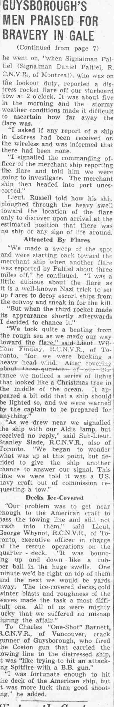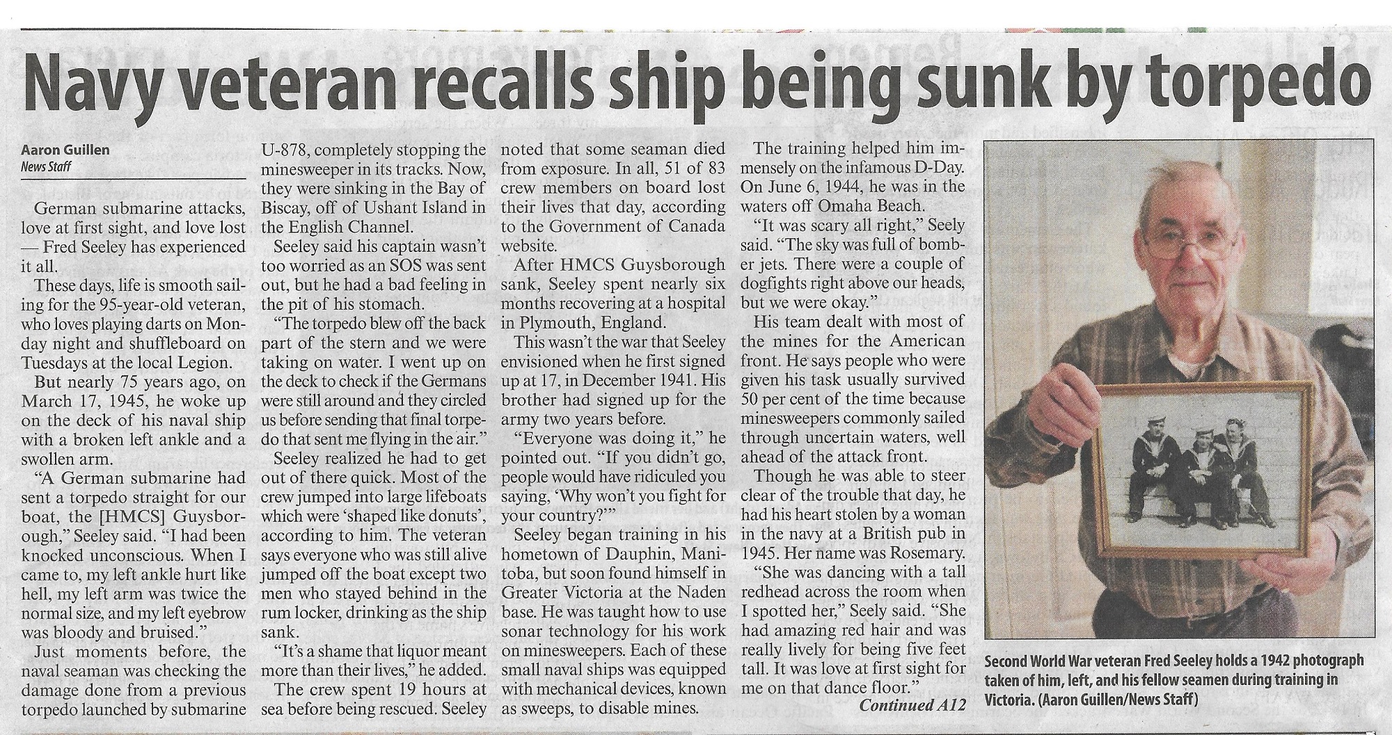 Seeley tells of the sinking of HMCS GUYSBOROUGH
