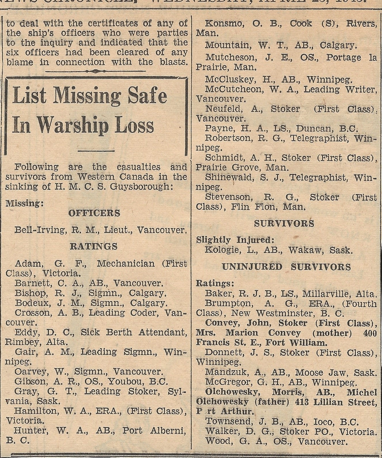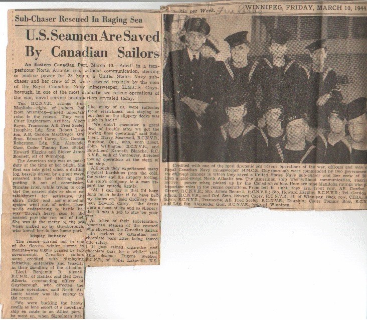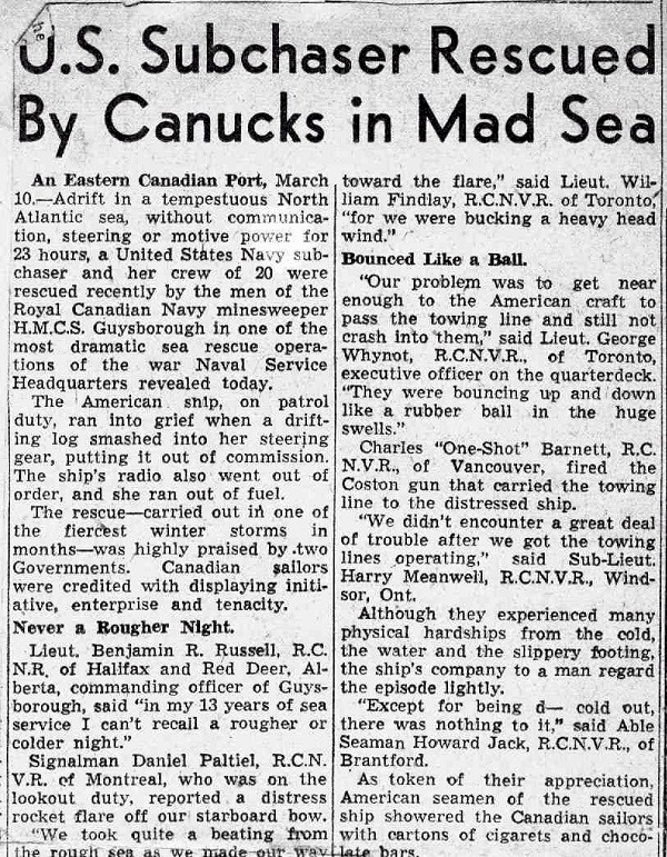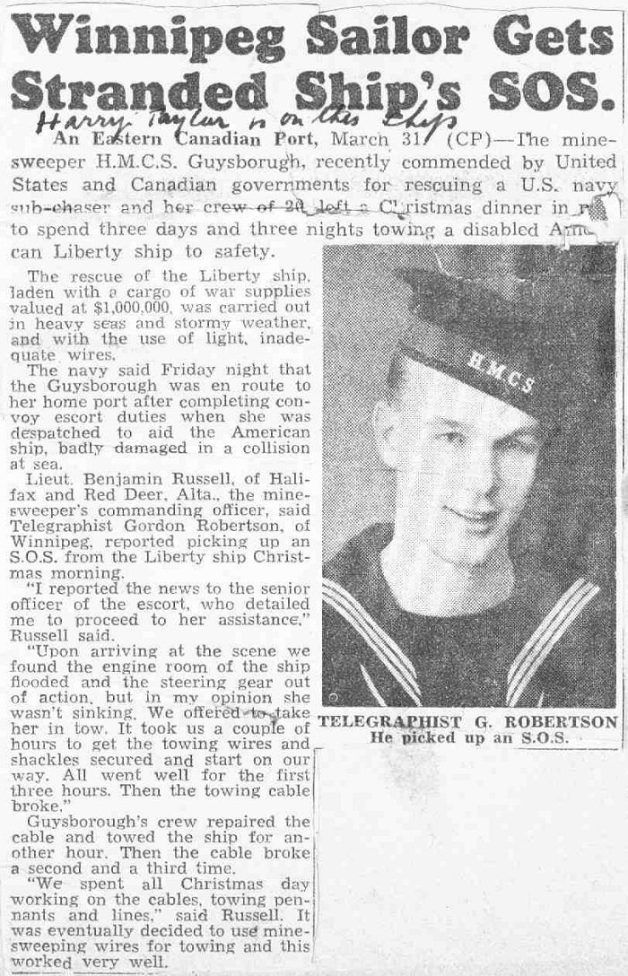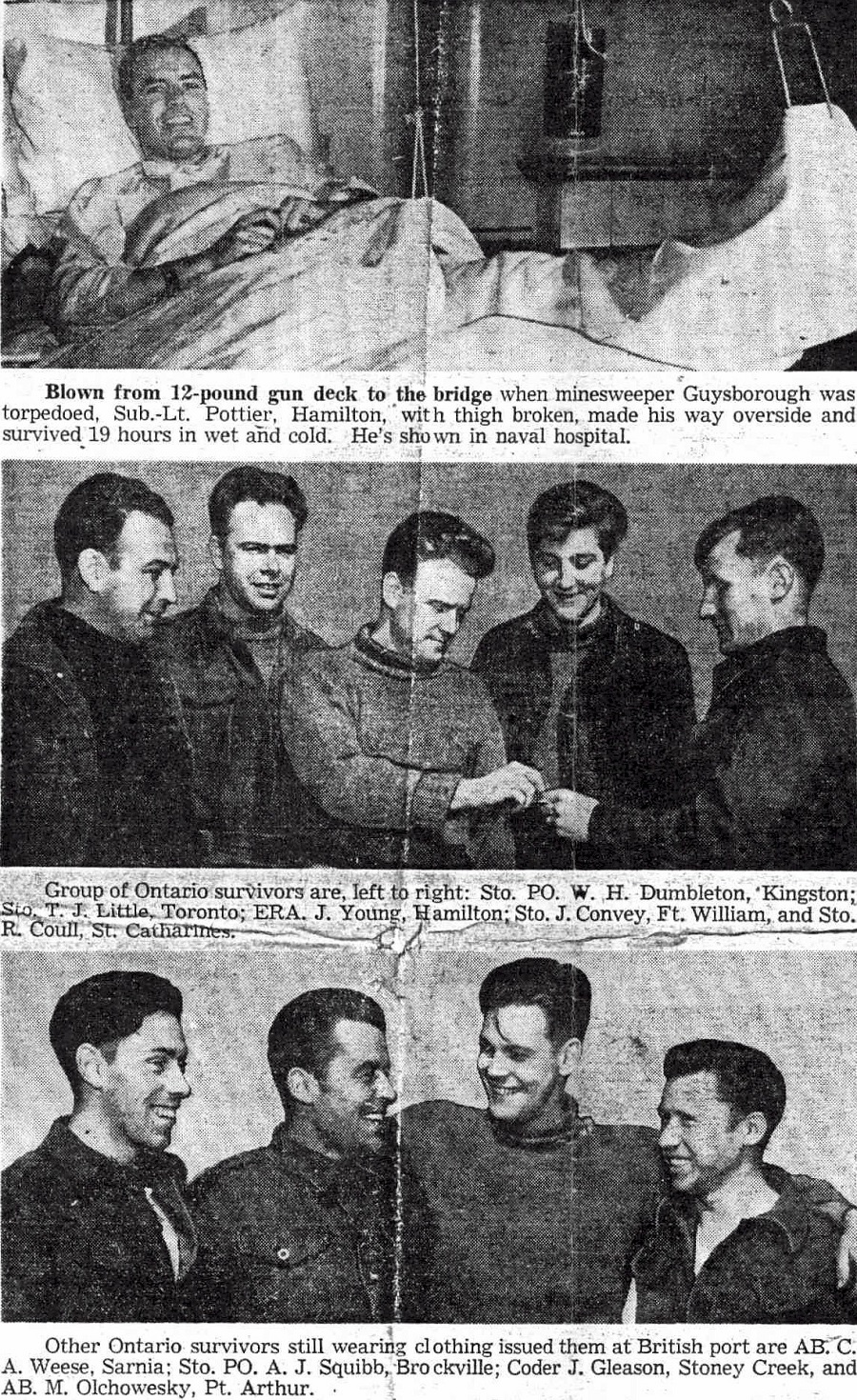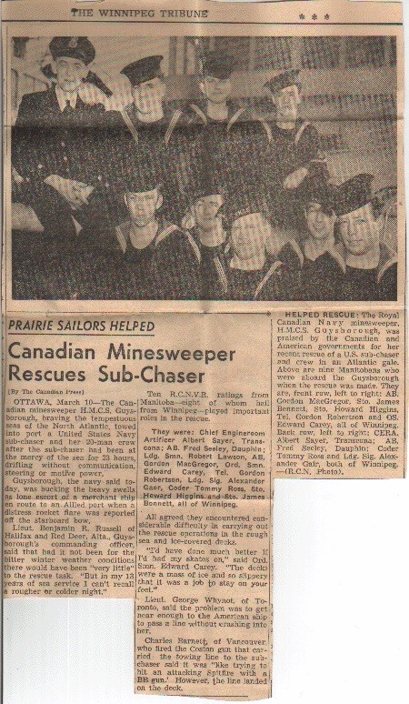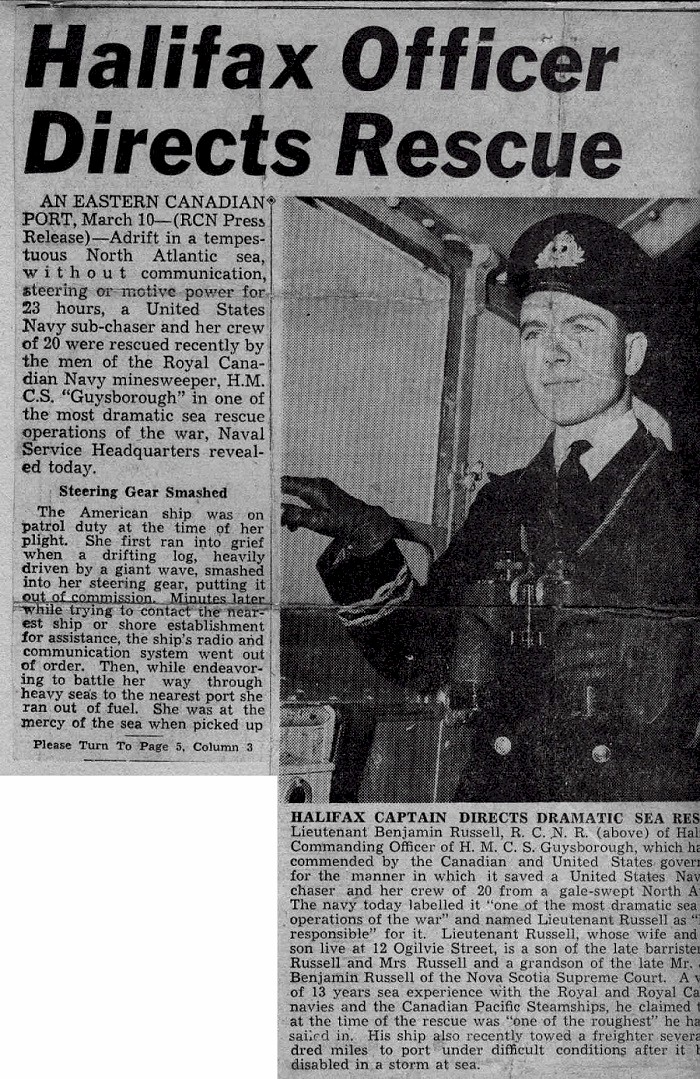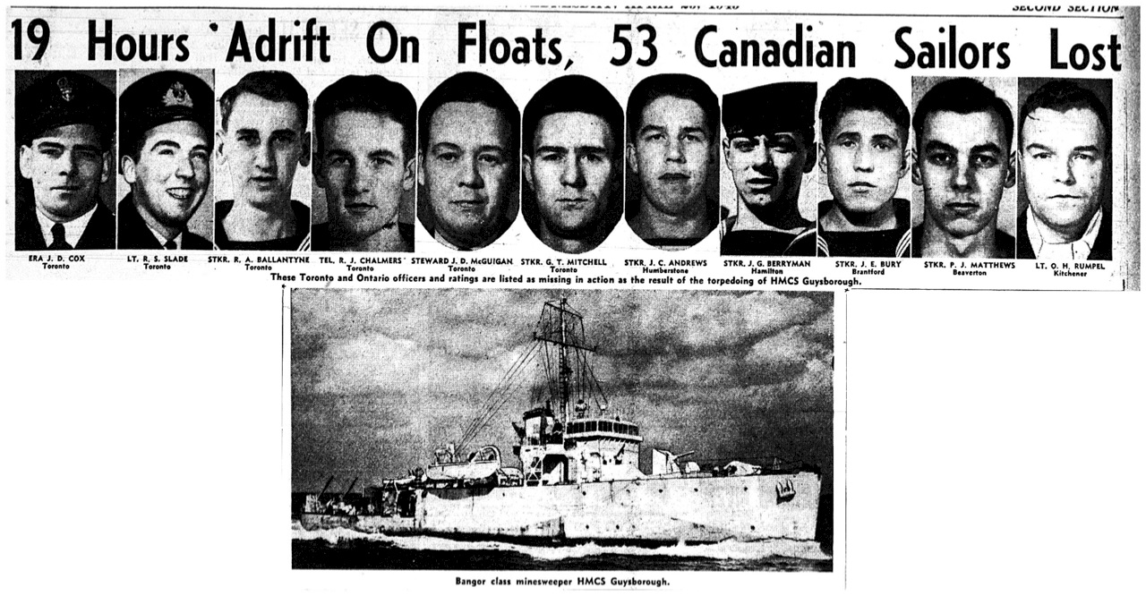 was serving in the minesweeper HMCS GUYSBOROUGH. On 18 Mar