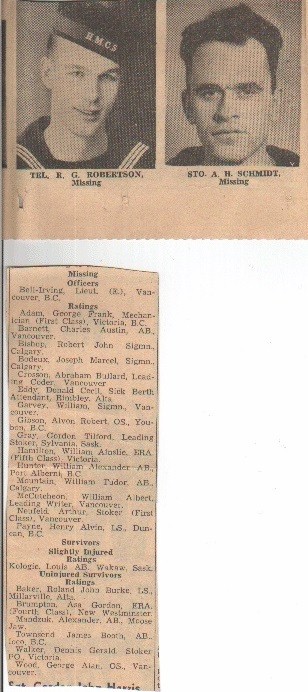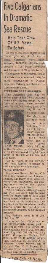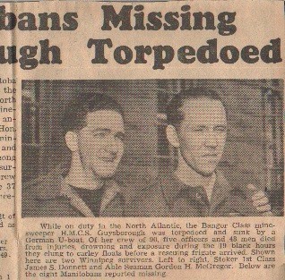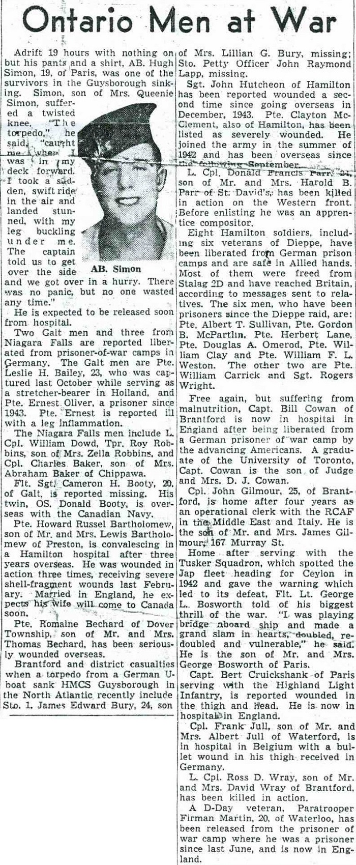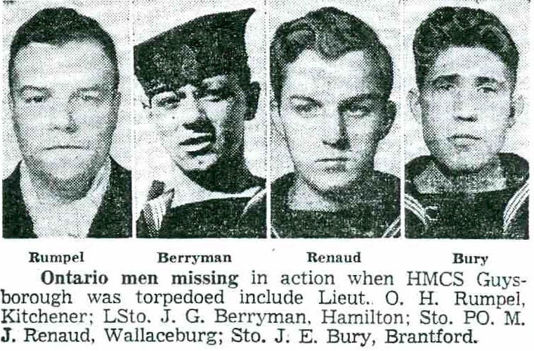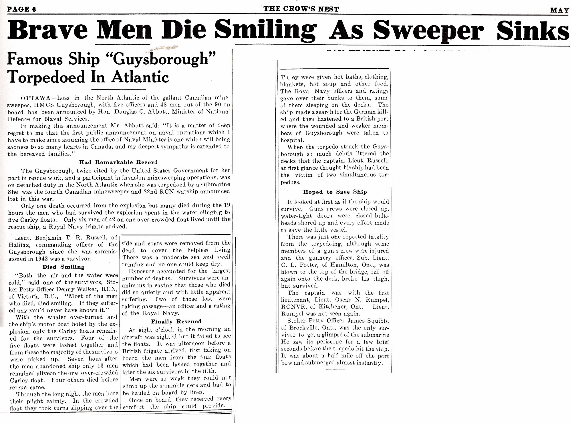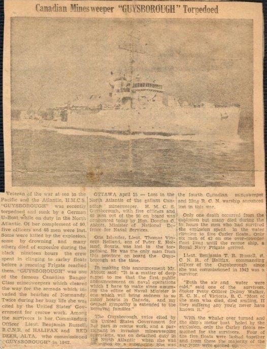 1945, HMCS GUYSBOROUGH was sunk by U-868 and William Sorrell was one