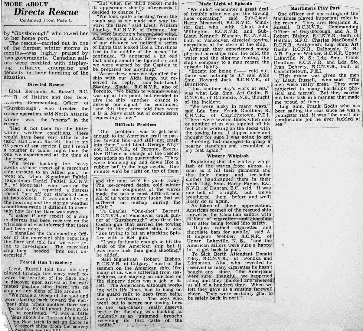 weeks' refit at Baltimore, MD. On 21 Feb 1944, with CANSO, KENORA and
