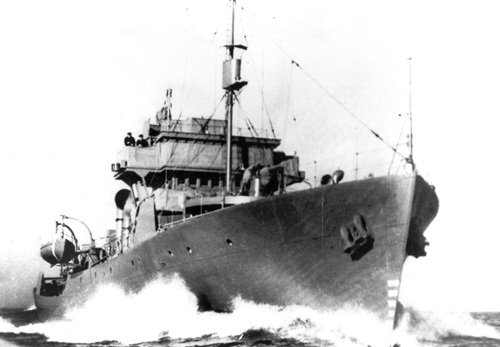 (CA57-CA59) HMCS HALIFAX K237 photographed from HMCS FREDERICTON K245 From the collection of Charles Atkins, RCNVR Courtesy of Lorne Atkins