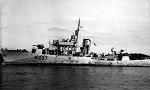 Built by Collingwood Shipyards Lt., Collingwood, Ont., she was commissioned on 26 Nov 1941, at Montreal. HALIFAX was the first RCN corvette to be completed with a long fo'c's'le. Assigned to WLEF on her arrival at Halifax on 18 Dec 1941, she was transferred in Jul 1942, to Halifax Force (Aruba Tanker Convoys). On 14 Aug 1942 she arrived at Aruba with HA.3, her third tanker convoy, and was assigned to escort TAW.15, a Trinidad-Aruba-Key West convoy which developed into the only major convoy battle of the war in those waters. Arriving in New York on 14 Sep 1942, she was placed under U.S. control for New York-Guantanamo convoys until Mar 1943, when she joined WLEF. Between 02 May and 15 Oct 1943, she underwent an extensive refit at Liverpool, N.S., followed by workups at Pictou. On New Year's Day, 1944, she arrived at St. John's to join EG C-1, leaving Londonderry on 11 Aug 1944 for two weeks' refit at Lunenburg. This refit was followed by three weeks' further repairs at Halifax and, late in Dec 1944, workups in Bermuda. In Jan 1945, she briefly joined Halifax Force, transferring in Feb 1945 to EG C-9 for the rest of the war. Paid off on 12 Jul at Sorel, she was sold for conversion to a salvage vessel.