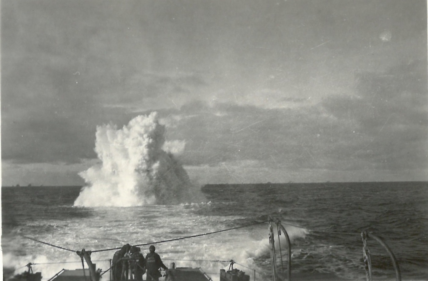 (WT01) HMCS ARNPRIOR K494 (WT02) Depth charge exploding astern of HMCS HALLOWELL K666 (WT03) Depth charge exploding astern of HMCS HALLOWELL K666 with convoy on the horizon (WT04) Quarterdeck of HMCS HALLOWELL K666 with convoy on the horizon (WT05) HMS VESPER I55