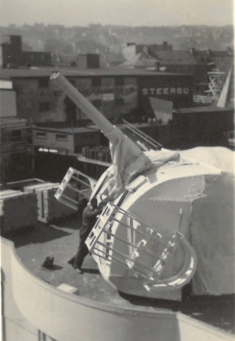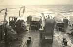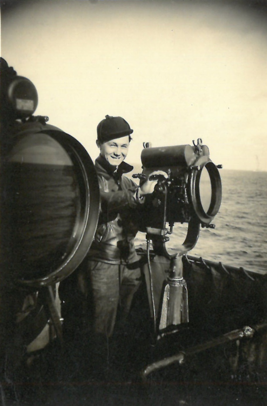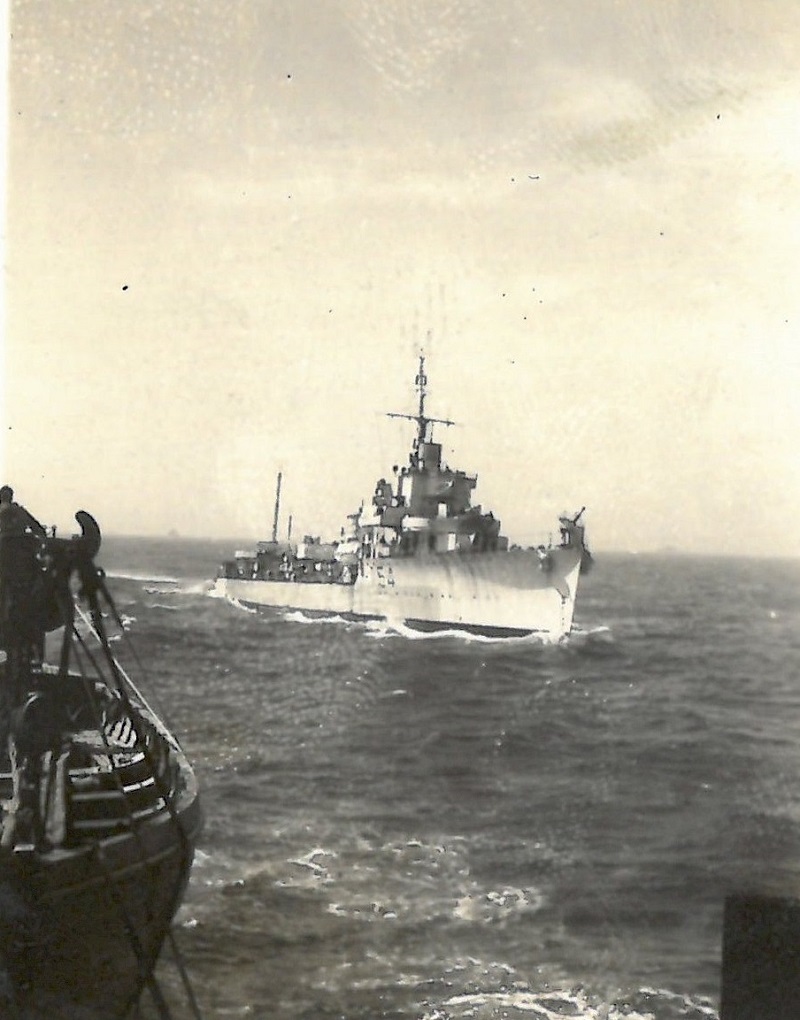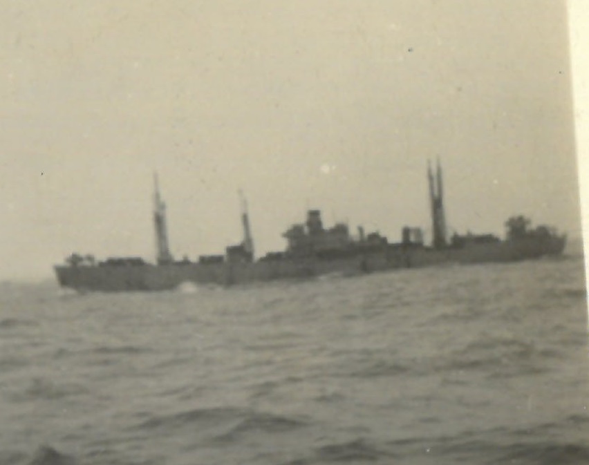 (WT16) Unknown merchant ship in convoy (WT17) HMCS HALLOWELL's twin 4-inch turret (WT18) Bill Tesluk on the signal light on HMCS HALLOWELL (WT19) US Liberty ship (WT20) Marty Hogan, Don Bruce and Bill Young