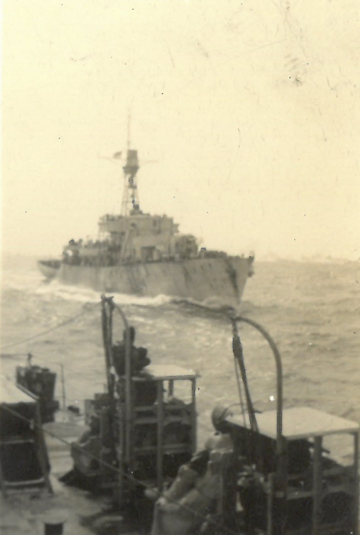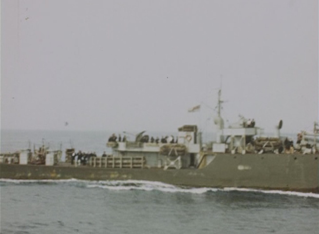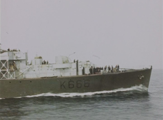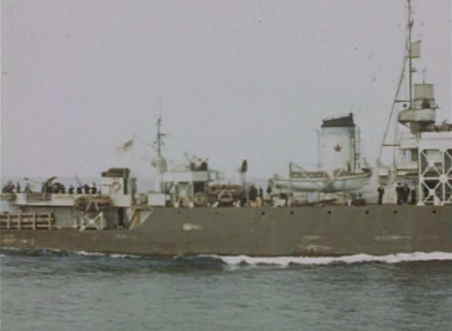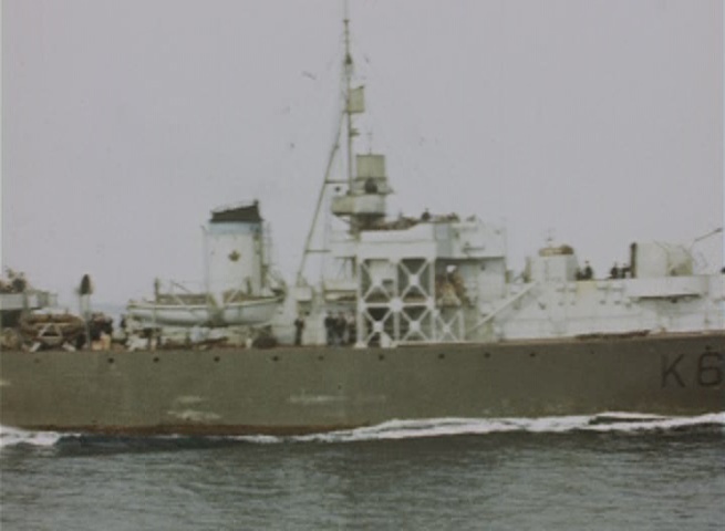 This photo was merged from a sequence of photos taken with 16mm colour film. Photos believed to have been taken from HMCS PENETANG K676